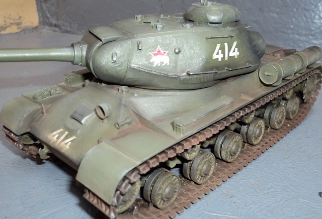 Чистенько, аккуратно, для второй модели очень хорошо. Вот тлько на модель не очень похоже. Про гусеницы вам сказали, затертости и загрязнения в неестественных местах по моему получились, ну надо бы перенести люк мехвода выше ну всякое по мелочи. В общем по моему твердая 4.