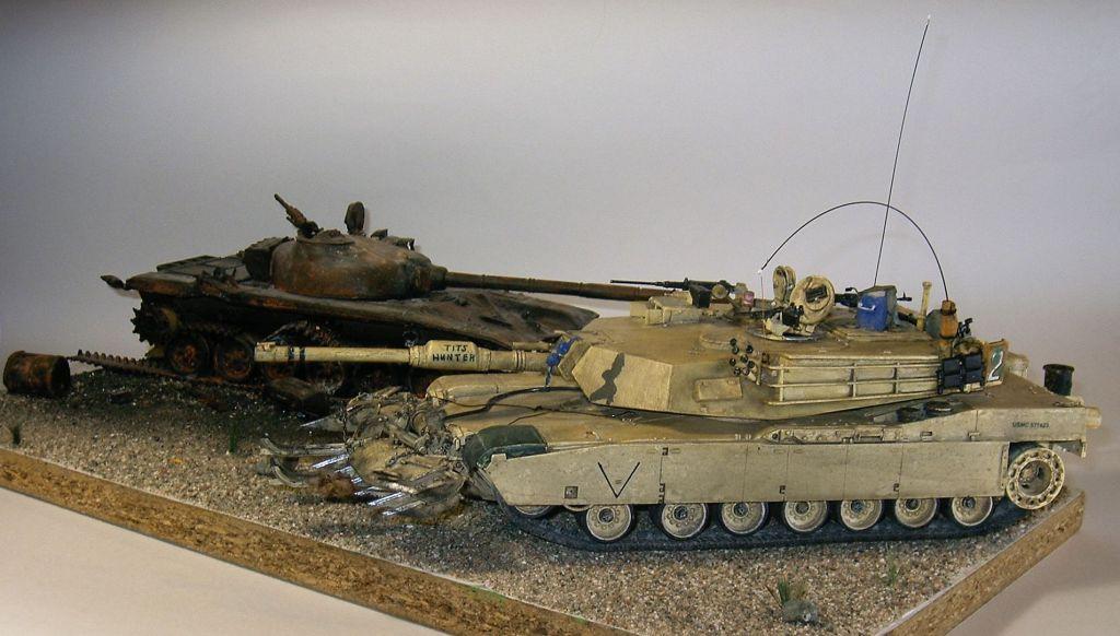 По просьбе Оберона добавил фото Абрамса с горелым Т72 (отобрал наиболее удачные из 13). Подставка заимствована от модели танка М60. Вообще же, Т72- моя первая модель БТТ (собирал около 7 лет назад), реинкарнированная подобным образом этим летом. М60, здесь не представленный, является ровесником и сотоварищем Т72
