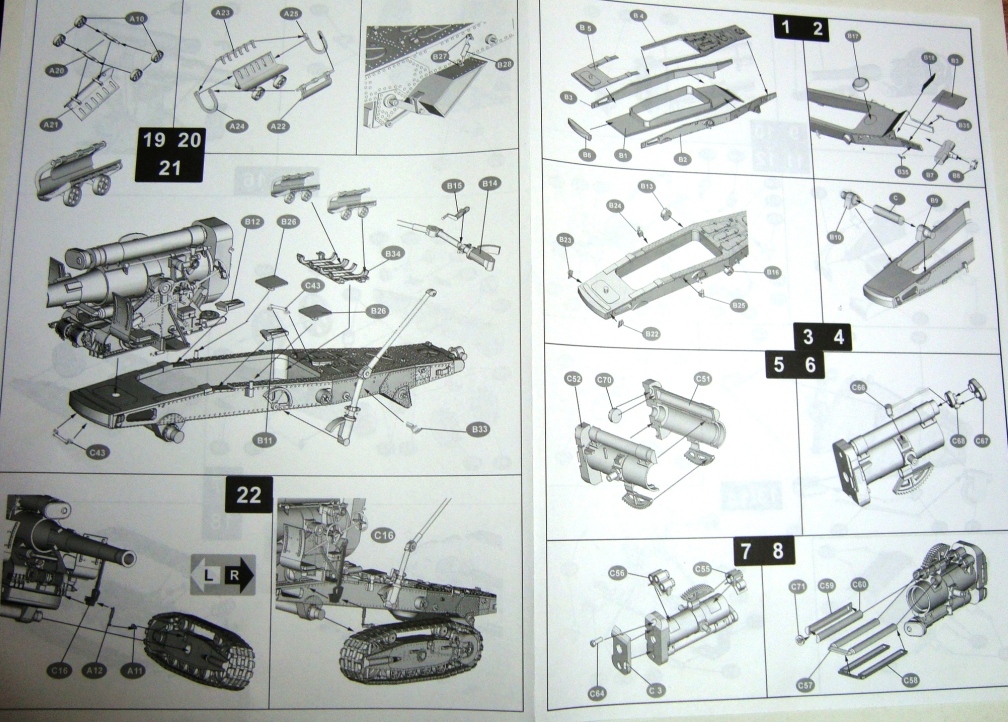 Хочу дать совет для тех, кто хочет приобрести Б-4, но не знает какого производителя выбрать: ВЭ или Trumpeter. В обоих наборах неправильные размеры,особенно лафетов(см М-хобби 4/2009 и 11/2010). Я повелся на рекомендации журнала и купил Б-4 от ВЭ. Тут то я и понял, что поторопился. Вся прелесть набора останавливается на приятно низкой цене. Сколько же там облоя, утяжин и недоливов, очень подружился со шпаклевкой и наждачкой. Имелся недолив детали ходовой(деталь№ С38), благо легко устранимый куском листового пластика. Но отсутствие одного вентиля из трех(деталь№С39, не знаю как правильно называется) , его сложно выпилить из подручных материалов.Пришлось осваивать технику клонирования детали в смоле. Отдельно приобретал передок от Оружейника из смолы, с ним тоже немного повозился, но собирается за один вечер