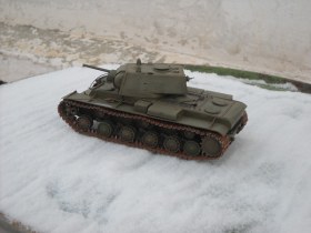 Только не пинайте, пожалуйста, за гусеницы. Знаю, перебор со ржой, но переделывать и перекрашивать боюсь. И вообще я начинающий моделист, так что хвалите меня побольше, иначе расстроюсь, потеряю веру в свои силы, а Родина потеряет еще одного перспективного сборщика моделей танков, бггг.