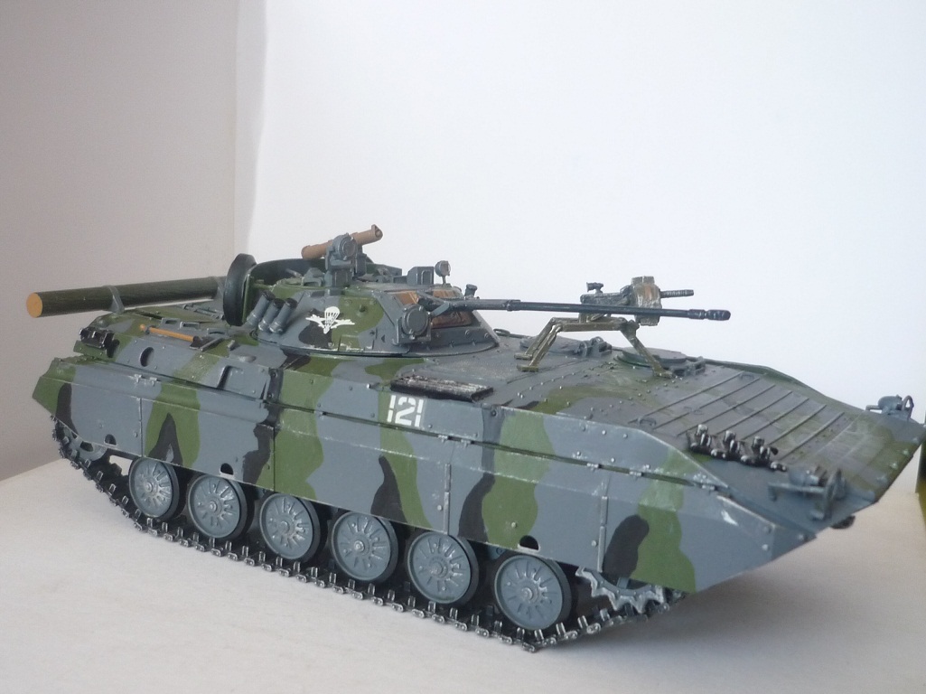 Такой окрас имел место быть, и по сей день применяется. Только это окрас БМП-2Д морской пехоты, ну ни как не ВДВ.