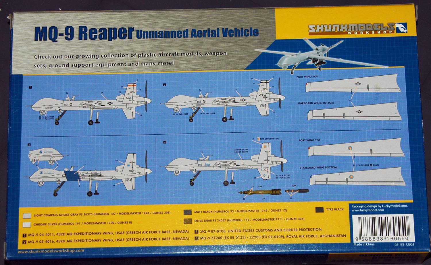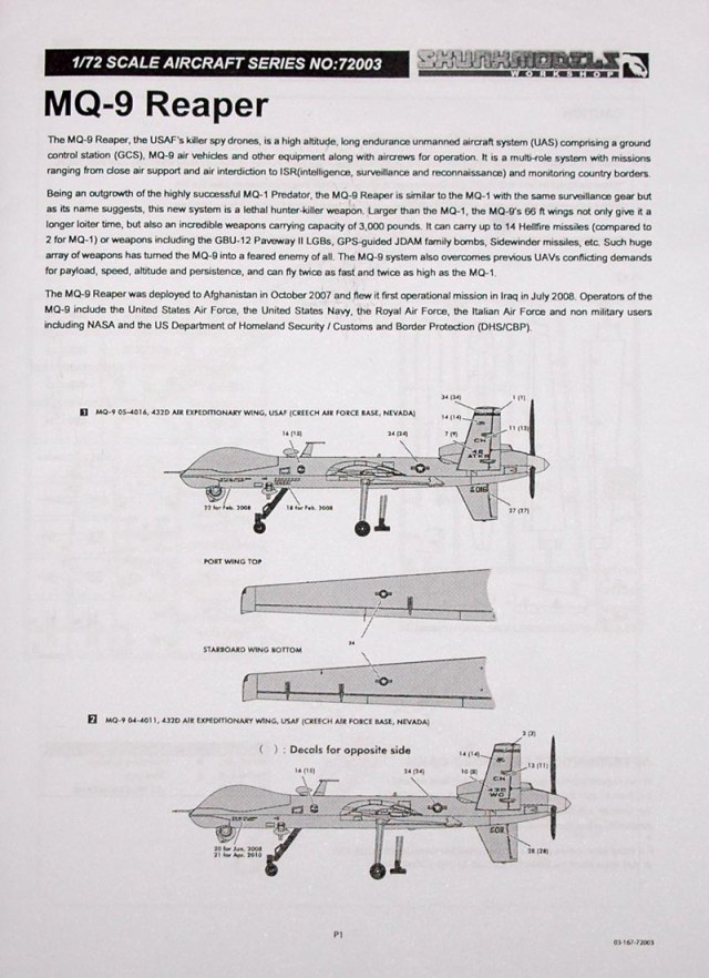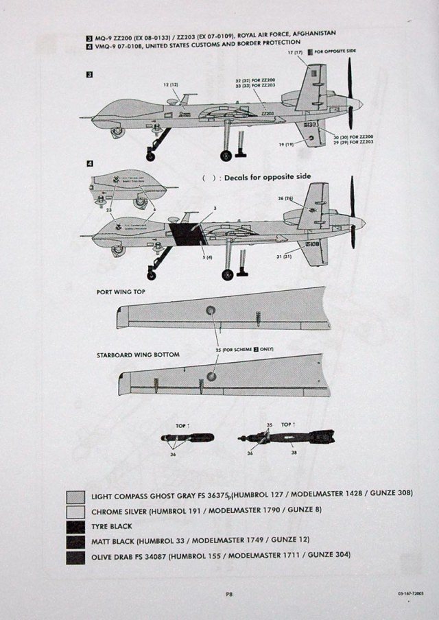 Я так и не понял почему, возможно они намекают, что если не вешать оружия на MQ-9 (ударный), то получится RQ-9 (разведчик). Отливка лежит на один комплект...а жаль...