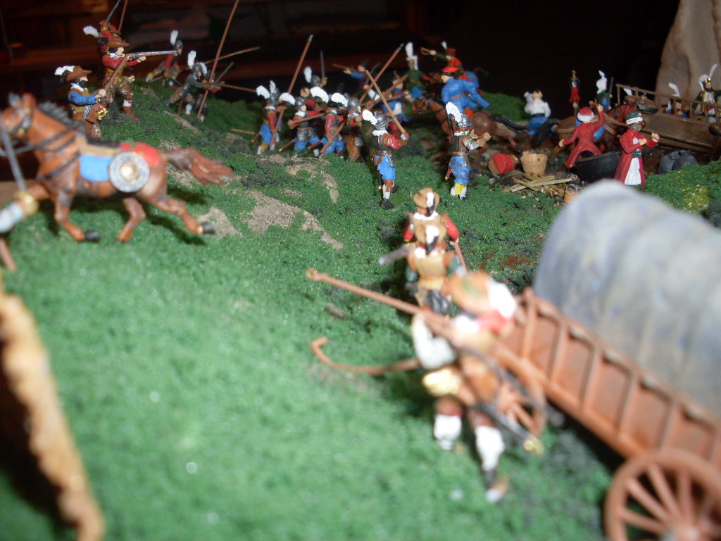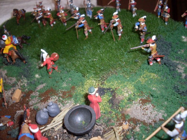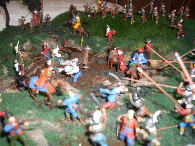 Могу еще добавить одну деталь к описанию. Про запорожцев в этом сражении. Отряд козаков оказался там вместе с отрядом крымчаком - союзников султана. Имя атамана, к сожалению, нигде узнать не удалось. Но отметил такой момент. После начала атаки, когда большая часть османского войска начала беспорядочное отступление к реке, именно запорожцы и крымчаки предприняли попытку контратаки. Ребята попытались прорваться к аббатству и закрепиться там. Если бы это действие было поддержано, исход битвы мог бы стать и другим. Но поняв, что основная масса бежит, козачки раздумали геройски погибать за султана и так же вполне организованно отступили, успев прихватить с собой из обоза янычар некоторые материальные ценности (ну не оставлять же!!!).