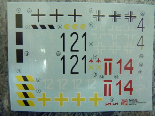 Инструкция выполнена в серо-голубых тонах, довольно понятная, но очень легко запутаться из-за большого кол-ва деталей в одной операции. Предлагается шесть вариантов окраски, и декали для них от картографа.