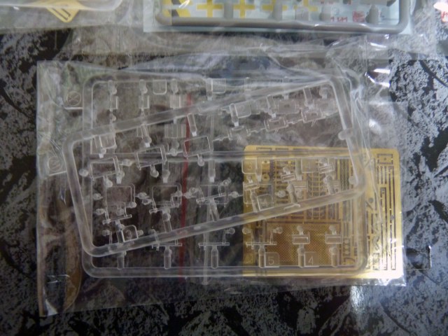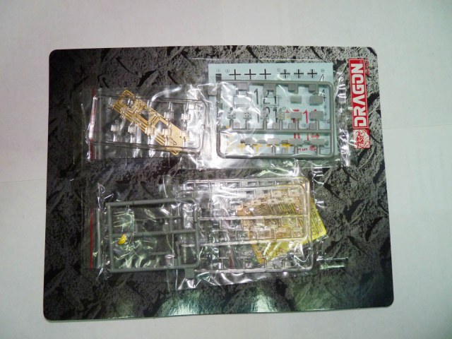Итак, о наборе: в наборе куча литников (22 штуки, куда столько на такой маленький танк 8)), каждый запаян в полиэтилен, из них три литника с прозрачными деталями, три небольших платы травления, дрэгоновские фирменные мэджик трак.