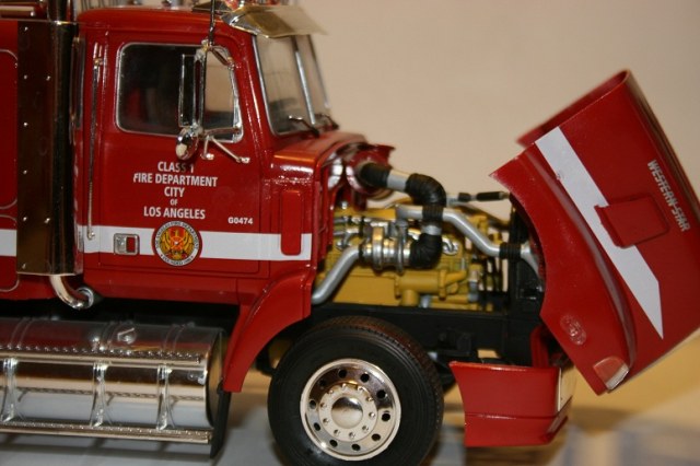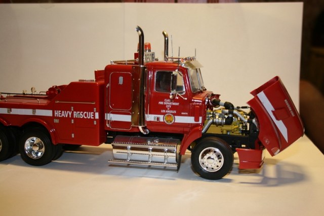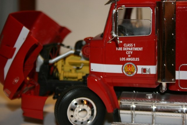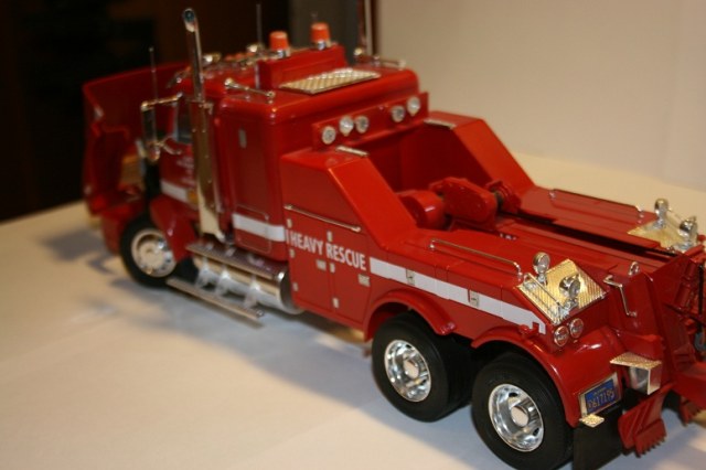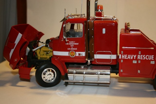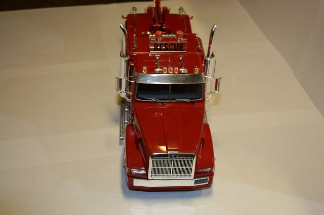 Эвакуационный тягач пожарной части, одна из последних перепаковок Италери. По сути это - Western Star Constellation. Собрать грузовик у меня было давно. И вот я решился отовариваюсь я всегда в одном магазине ТМ. Хотелось что бы первый грузовик был каким нибудь специалезированным и мой взгляд лег на этой модели. Сборка вызвала много эмоций так как это был ПЕРВЫЙ грузовик (как первое свидание в детстве). все детали я бережно отделял от литников обрабатываал надфилем и наждачкой. особых трудностей небыло в сборке не было. Трудность наступила когда я добрался до хромированных деталей. Я ведь с ними ни разу не работал до этого (поэтому швы остались на баках). Двигатель меня приятно удивил ведь до этого я с таким масштабом не работал, дополнительную проводку я делать не стел (ибо не умел на то время) и портить не стал. Окрасил его в желтый цвет (фотку движка нашел в нете), патрубки оекрасил под алюминний все краски я использоват Тамиевские. Окрасить тягач хотелось яркой красной краской так что бы он горел вместе с хромом краску нашел в автомобильном магазине при покупке на крышке и в каталоге была яркой а когда пришло время красить я огорчился в оттенке цвета но уж сильно хотелось ее покрасить и красил тем что есть. декали я клеил при помощи жидкости Сол и Сет. после всего я задул звездовским глянцевым лаком. Смывку я делать не стал боясь испртить да и пожарные машины всегда были до блеска намыты и натерты в деппо. Так что выношу на ваш суд эту модель.