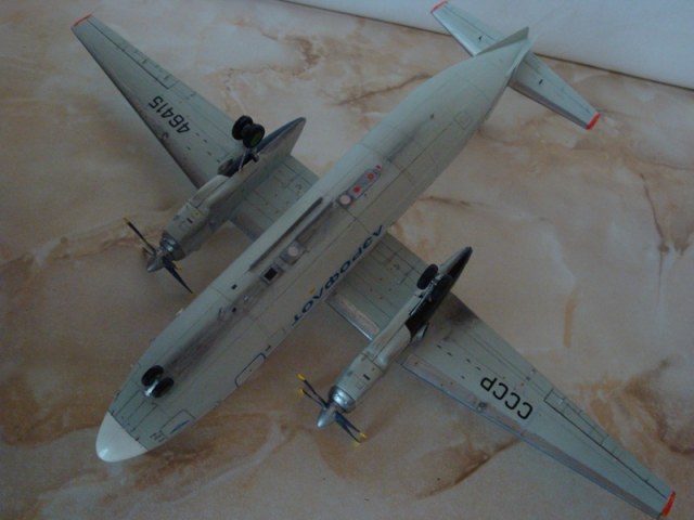 Геннадий! Модель получилась-класс! Вам удаётся передать окраску Антонов периода 70-80 годов.Работал на них и просто получал удовольствие от просмотра.Можно ещё добавить "сабельную" антенну" позади ввода длинноволновой, но она была не на всех Анах-24,по-доработкам,и очень плохо видно штыри РИО-3( радиоизотопный индикатор облединения) под ракетницами.Фотки немного не чёткие.А всё остальное очень понравилось, спасибо! И Удачи в следующих деяниях!