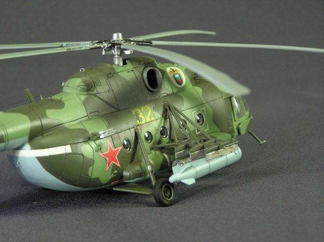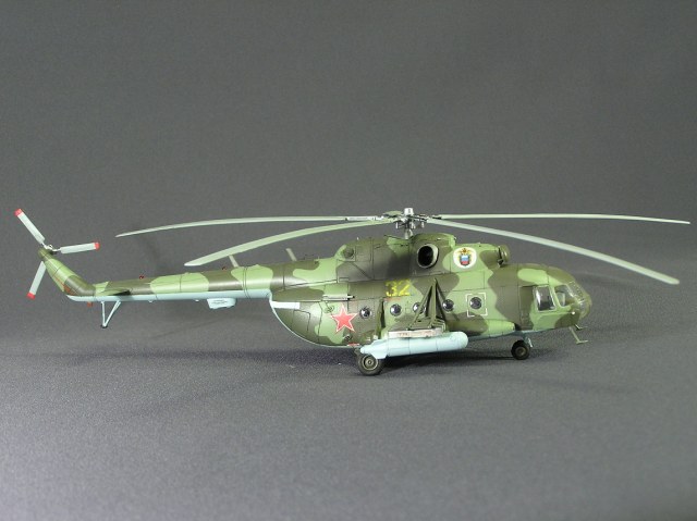 Нуу, на данный момент лучшая изкоробочная восьмёрка от Звезды, ИМХО. Но придраться всёравно есть к чему, например, провис лопастей НВ неправильно показан, окраска их тоже несовсем корректна (законцовки должны быть жёлтыми, передняя кромка - алюминий), и по поводу цвета камуфляжа сомнения (Если нет фото прототипа), также показались слишком заваленными во внутрь колёса шасси, и подвески вооружения приклеены изкоробочно неправильно, с таким серьёзным подходом непонятно, как можно было допустить такие мелочи...