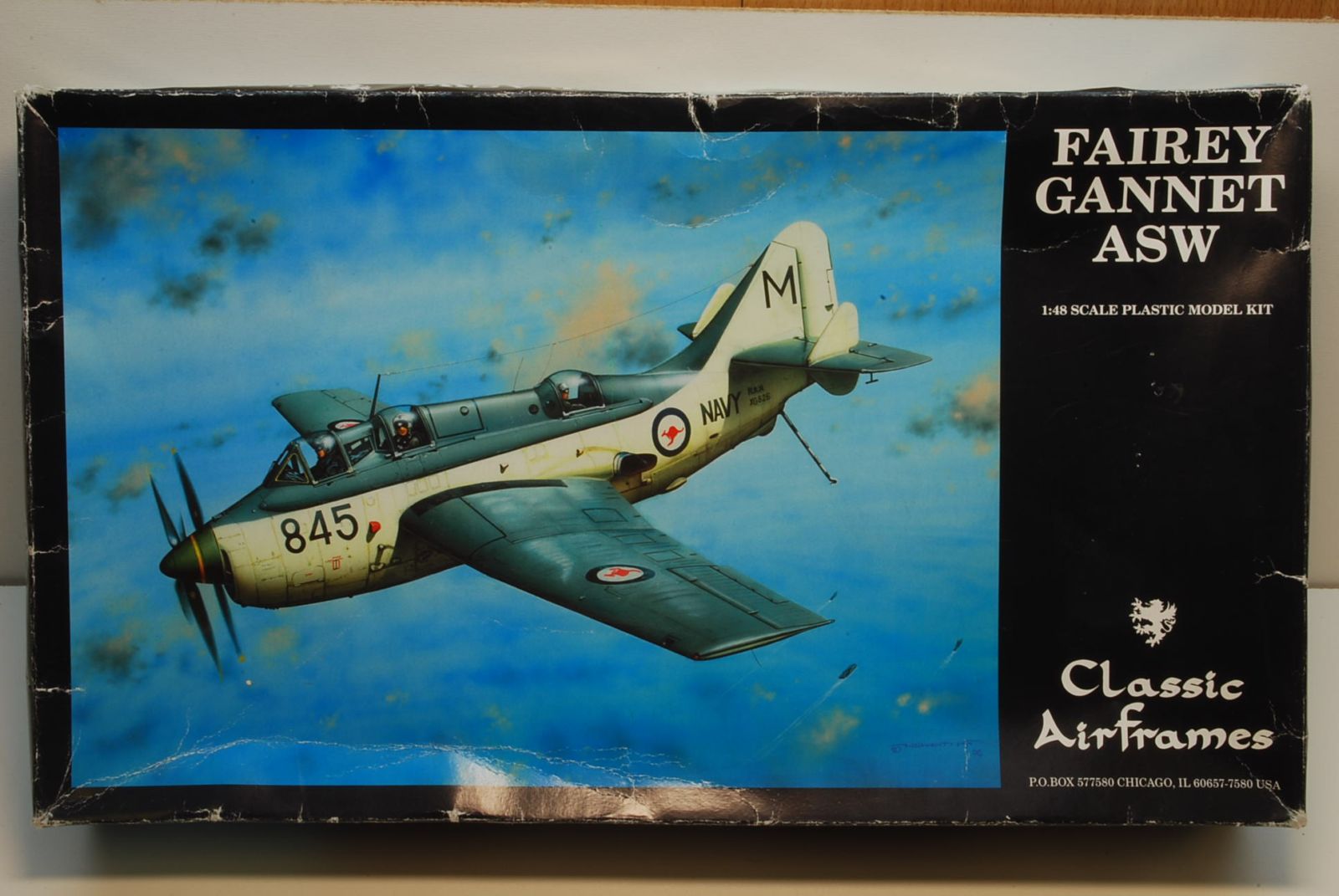 Добрый день. Представляю вашему вниманию обзор на очень редкую на сегодняшний день модель не существующей ныне фирмы ClassicAirframe. Краткий исторический экскурс в историю реального прототипа. Самолёт FaireyGannetсовершил свой первый полёт в 1949 году, производился в различных модификациях как противолодочный самолёт и самолёт ДРЛО с 1953 г. по 1959 г. Эксплуатация в войсках самолёта происходила с 1953 г. по 1978 г., ( Королевские ВМС, ВМС ФРГ, Королевские Австралийские ВМС и ВМС Индонезии.) К середине 60-ых эти самолёты постепенно стали заменятся противолодочными вертолётами. А теперь о модели, многие здесь присутствующие с моделью Gannet-а знакомы по изделию ДФИ (ех NOVO/FROG), но это изделие очень сильно отличается по всем параметрам и с тем изделием не имеет ни чего общего!! Модель была упакована в коробку из картона средней толщины и т.к. она мной была приобретена у частного продавца на электронном аукционе, то за время пребывания у предыдущего хозяина коробка не много истрепалась но ее содержимое не пострадало. Выполнена модель по технологии ЛНД, имеет гладкую глянцевую поверхность пластика, тонкую аккуратную внутреннюю расшивку, в пластике выполнены только основные детали самолёта( фюзеляж, планер, стоики шасси, винт), все же остальные детали выполнены из полиуретановой смолы и имеют очень хорошею проработку(кокпит, воздухозаборники, колёса). Фонарь прозрачный хорошего качества. Декаль качественная от итальянской фирмы Cartografна четыре варианта окраски (ВМС Великобритании, ВМС Австралии, ВМС ФРГ, ВМС Индонезии) Инструкция ч.б. на на трёх листах подробная и понятная. На этом наверное всё. Приятного просмотра.