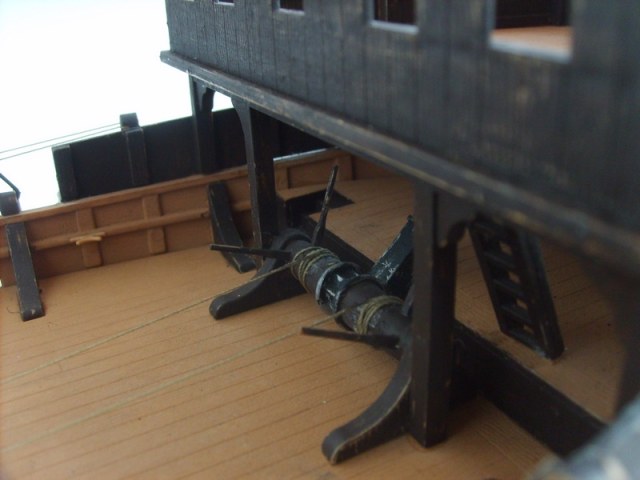 Приветствую! Ваша модель производит положительное впечатление! Но и без "но" не обойдется. Очень странным показалось использование брашпиля в качестве механизма подъема реи,когда он используется для подъема якорей.Через шпиль тоже тросы не проходят.Если правильно понял,то это первая модель корабля,но не первая модель вообще.Если так,то покрасить можно и "многоцветно", а не ложить один цвет краски на голый пластик и голым пластиком имитировать пошарпаность,он местами очень режет глаз(особенно последнее фото).Следы от толкателей на юферсах смотрят наружу,очень портит вид,нужно было их развернуть.По текелажу подробнее скажут коллеги.Кстати к обухам что у мачты должна крепится веревочная лестница, для тех.обслуживания мачты и рея так сказать.Не хватает смывки на палубах,а так вполне положительное впечатление.Успехов!