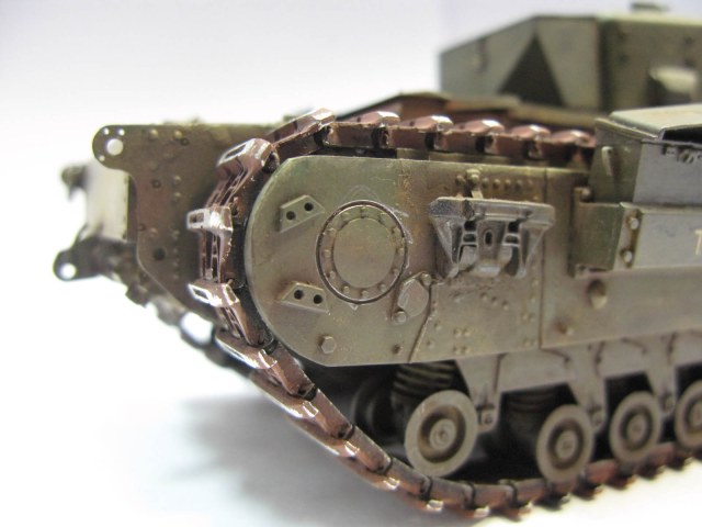 Дмитрий, сейчас только рассмотрел, примите в качестве небольшого совета по работе с Фриулом. Лучше оставлять меньше выступающей проволоки, где-то полмиллиметра, и вдавить этот кончик обжав пинцетом. И гусеницы надевать на модель так, чтобы сторона со вставленными пальцами была вовнутрь. Вам переодеть гусеницы - дело 5-ти минут, а модель от этого выиграет, не будет снаружи торчащих загнутых обрезков проволоки.