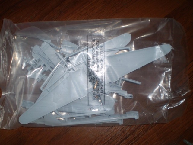 В коробке находятся не литники, а скорее их части, разделённые на отделы: фезюляж, части двигателей, внутренности кабины и прозрачные детали.