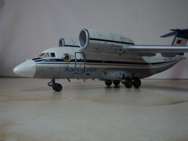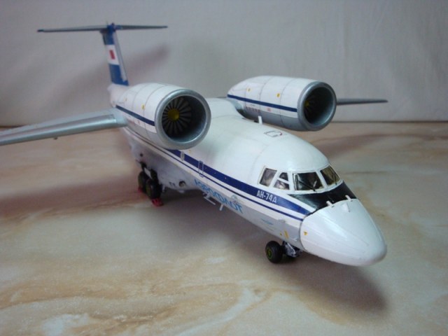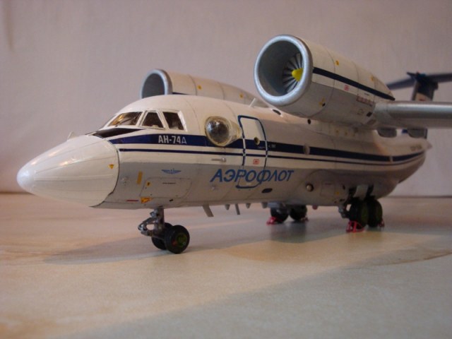 Добрый вечер. Представляю Вам одну из давних моих работ, Этот Ан-74 производства "ТОКО" был собран в далёком 91 году. Кто помнит тот знает 91 год, нет ничего ни красок ни лаков ... В то время я работал в АТП, набрал в малярке красок и вперед. В следствии длительной эксплуатации, и дальних перелётов ( с полки на полку, с серванта на сервант ) налет составил около 60 кв. мера. Вид у модели был чесно говоря плачевный. Не так давно наткнулся на токовскую деку с тех. надписями Вот и решил модернизировать в Ан-74д. Одним словом дать модели вторую молодость.