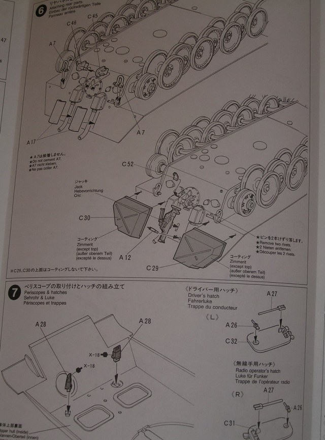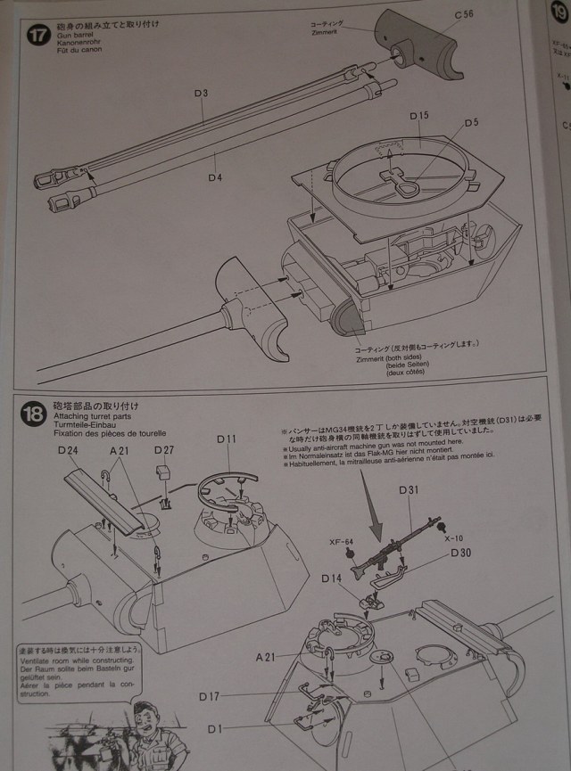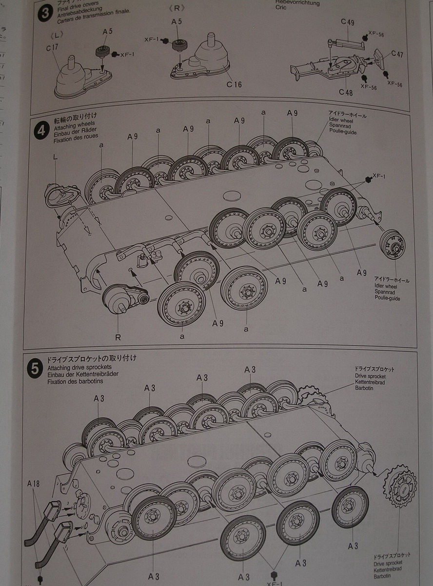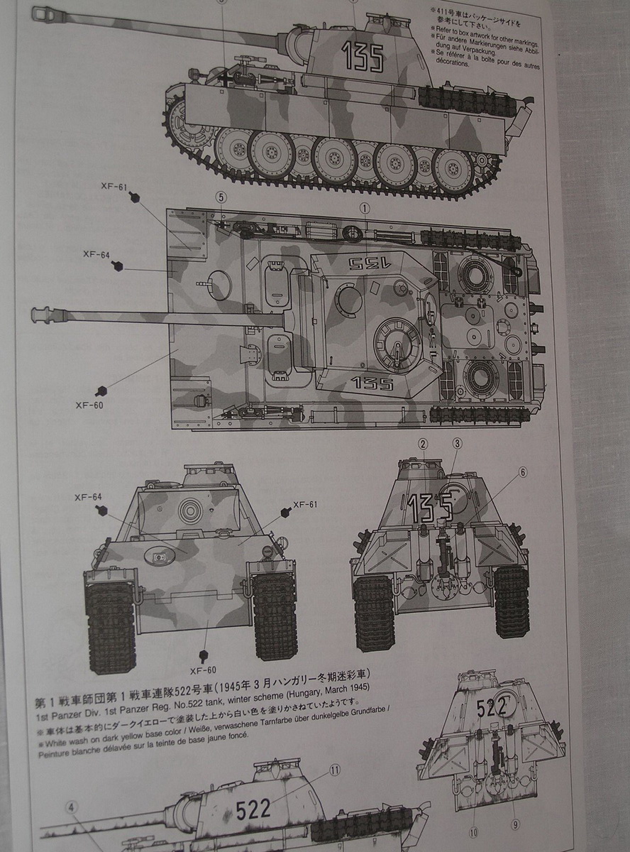 Tamiya предлагает 2 варианта окраски 1- трёхцветный камуфляж ,2 - зимняя (белая окраска.)