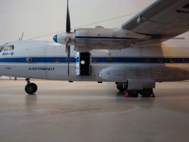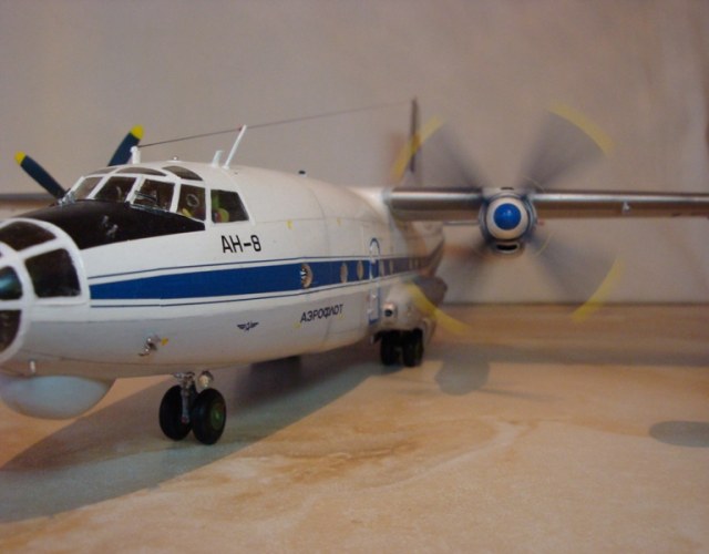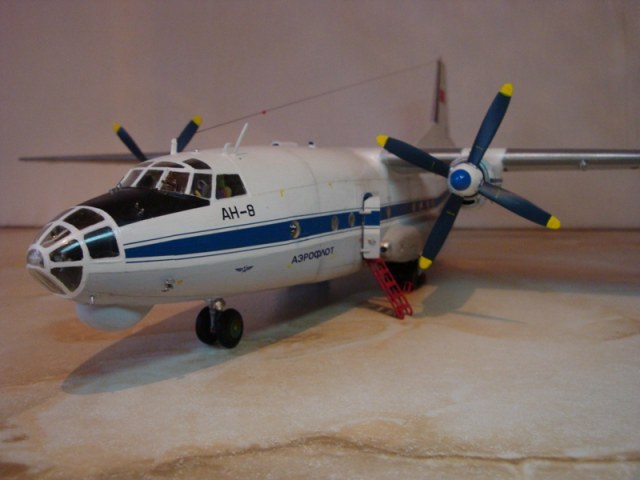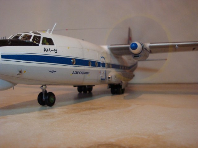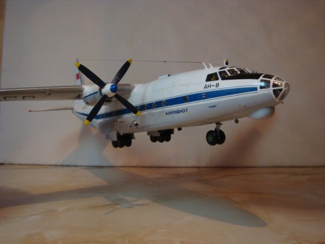 Добрый вечер, Хочу представить еще одно творение "Амодел" Ан-8. Модель покупалась в декабре 2010г. Ан-8 превзошол все мои ожидания. Сборка проходила без отборного мата, стыкуемость отличная. Как любитель гражданской авиации борт собирал Аэрофлотовским. Деку позаимствовал от Ан-12 (РОДЕН), правда пришлось потрудится над перекроем. Доработки в моём стиле, я любитель того, что бы всё крутилось и вертелось, закрывалось и открывалось.