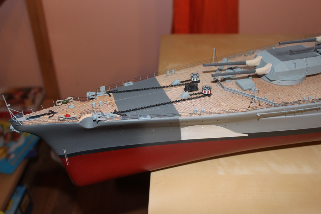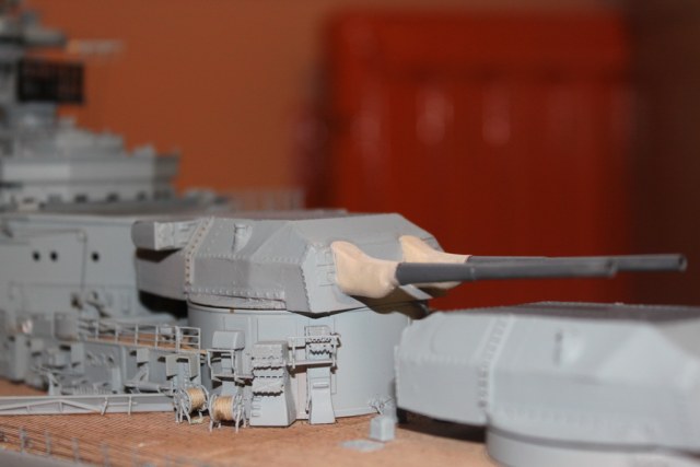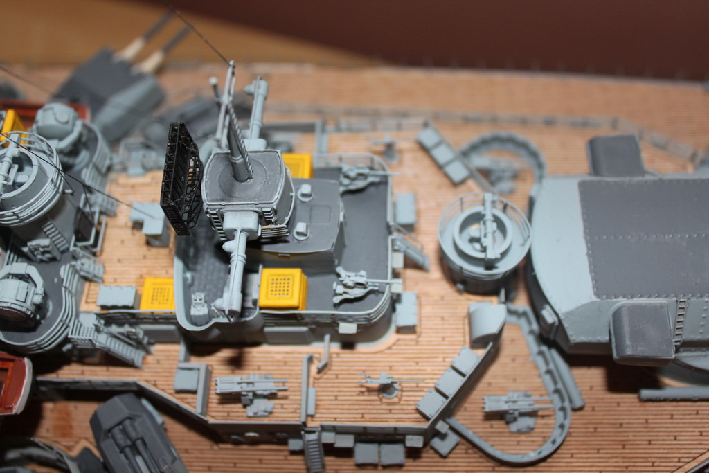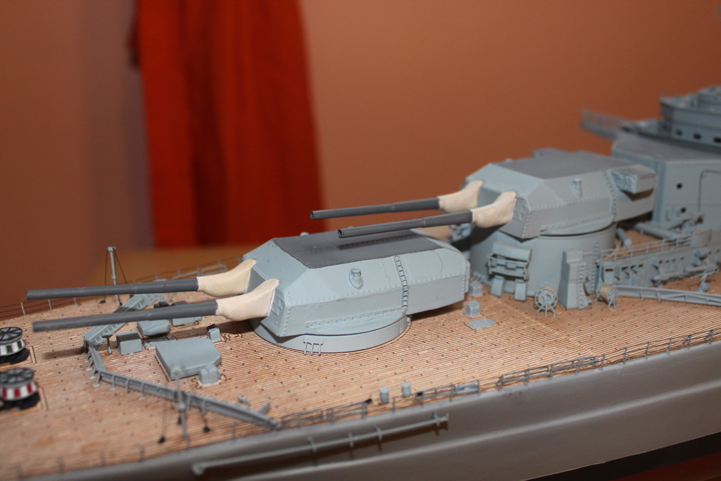 Фото 3 и далее - палуба напоминает расчерченный шпон. С этим нужно было что-то делать. Грани главных орудий не отличаются супераккуратностью (вы можете мне возразить-"легко сказать, попробуй сам" и будете правы)