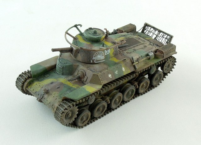 Изкоробка. Добавил только сетку для десанта, какие использовались японцами на Сайпане. Камо скорее по мотивам, т.к. на фото прототипа толком не разобрать, поэтому ориентировался на инструкцию и книжки.