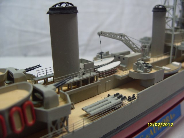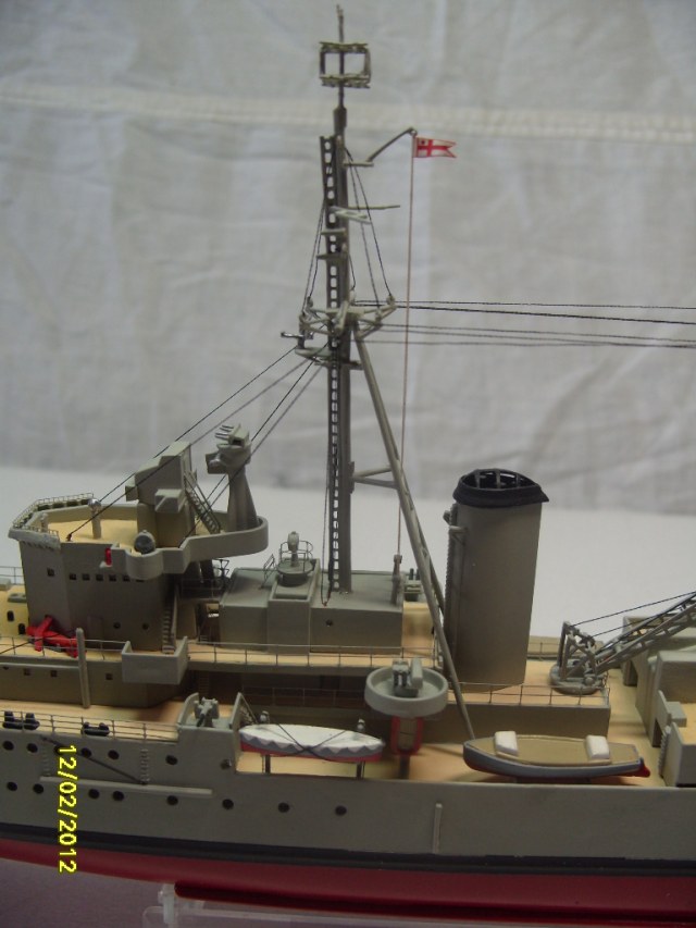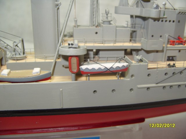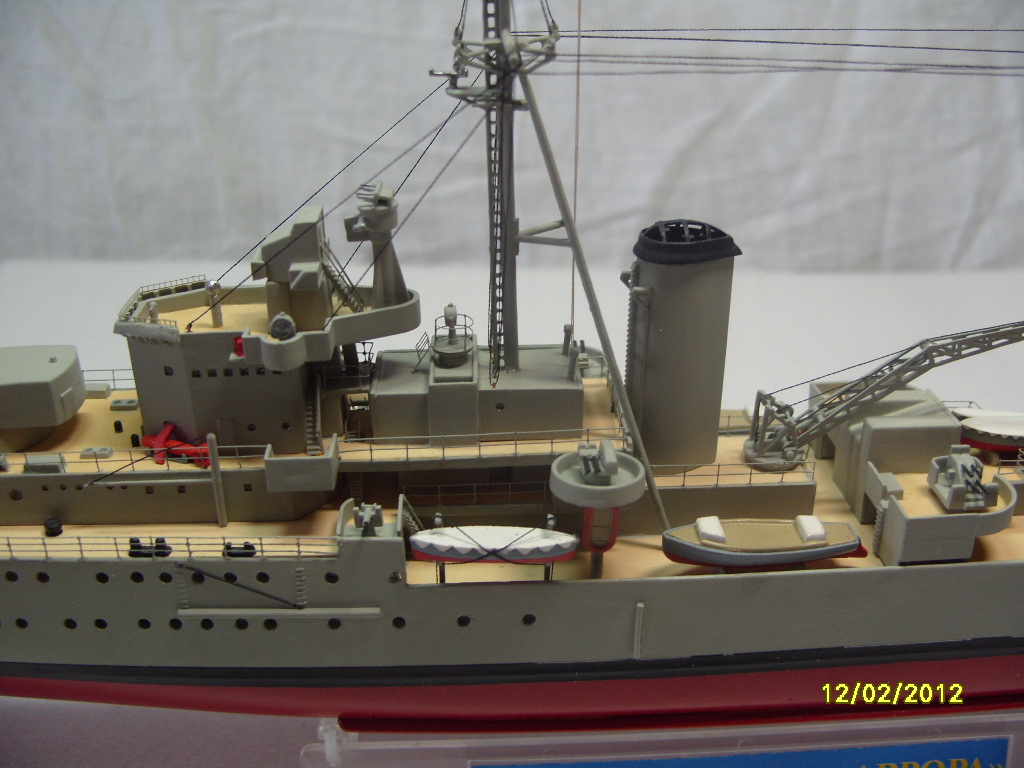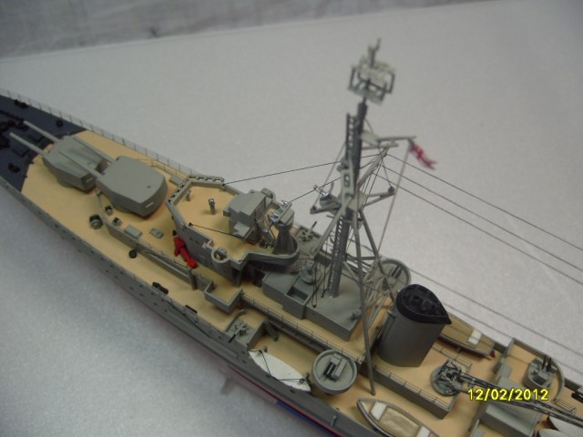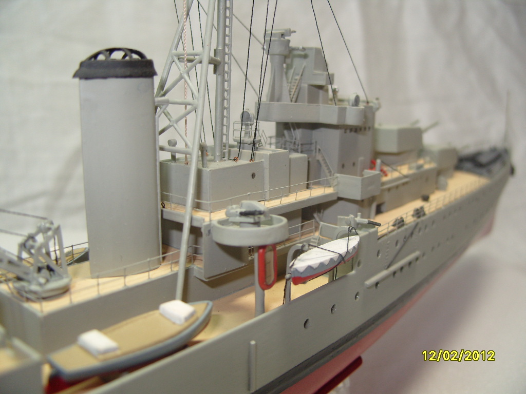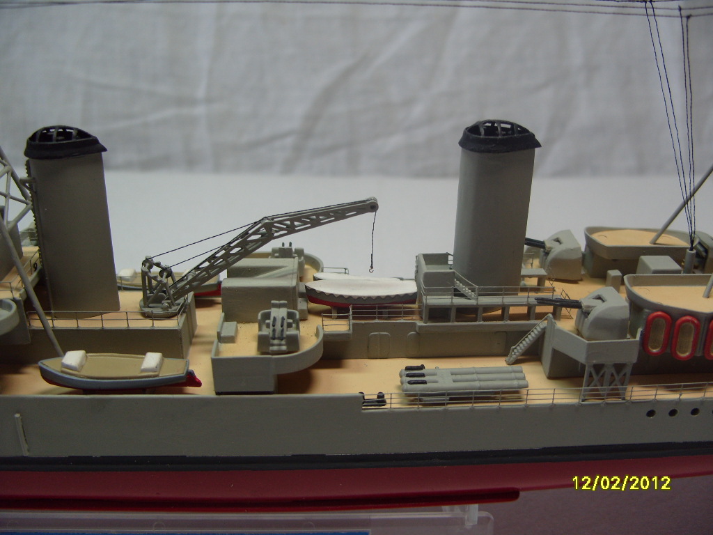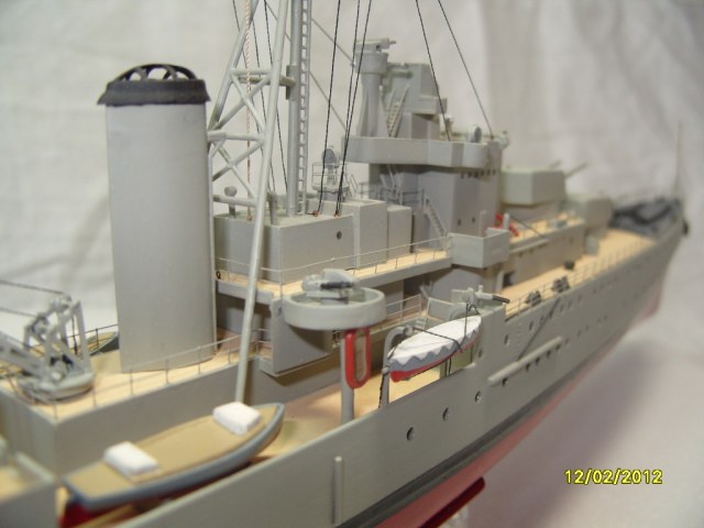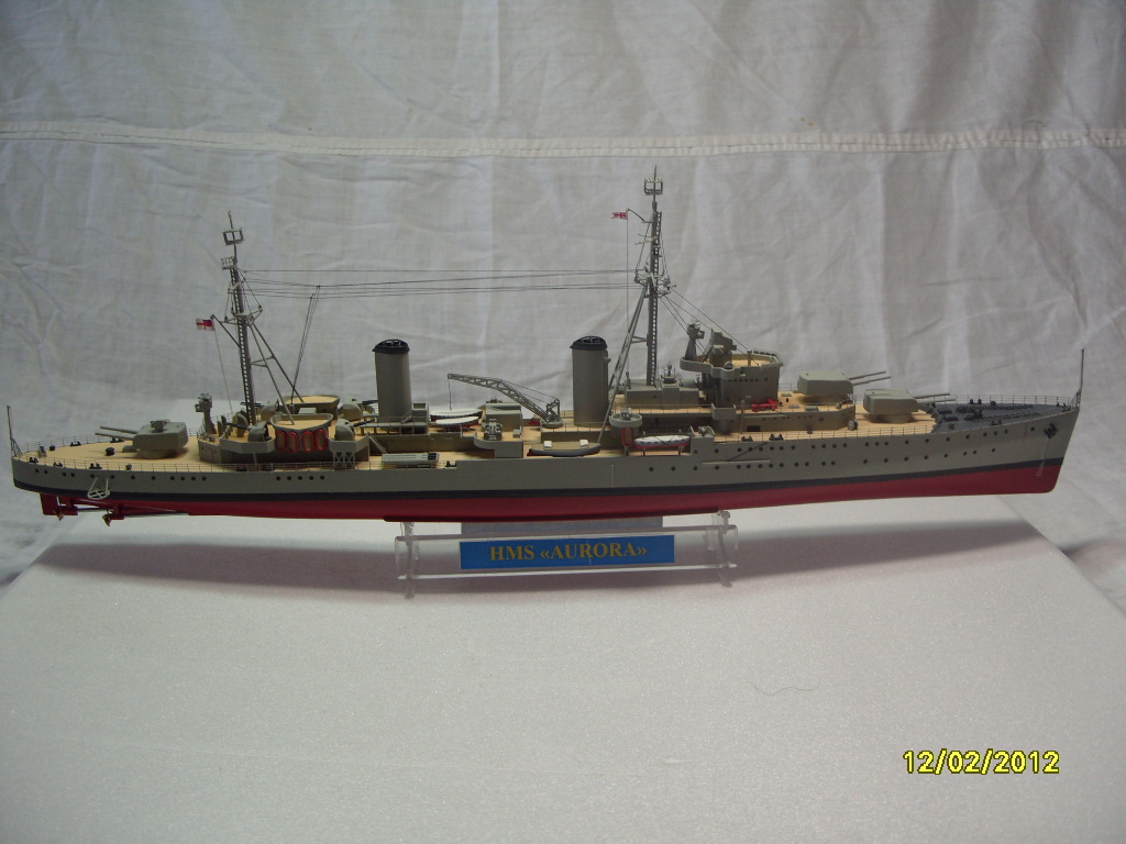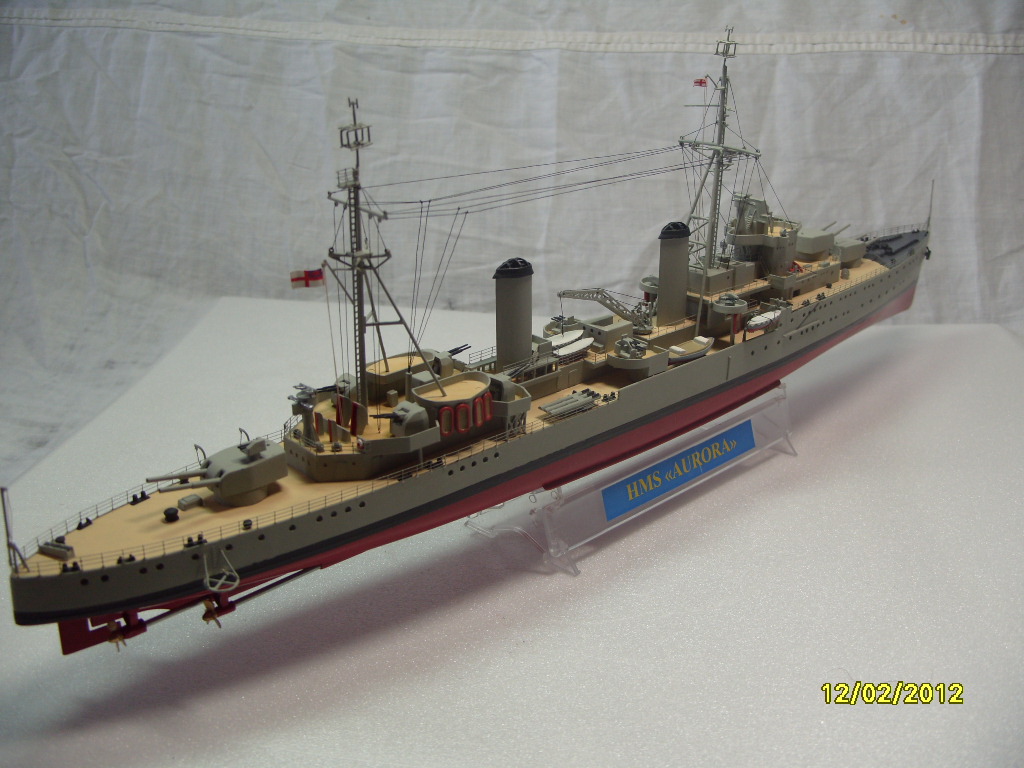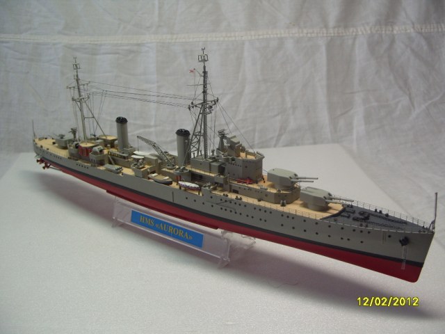 На коробке написано HMS AURORA. Леера на надстройках там где вторая носовая башня главного калибра, за ней и перед первой трубой. В районе второй трубы на надстройках, там где шлюпки и дальше до кормовых орудий главного калибра.