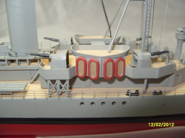 29) На надстройке корабля, в средней его части, перед первой трубой, добавлены два конструктивных элемента, присутствующих на фотографиях корабля - из отходов облоя