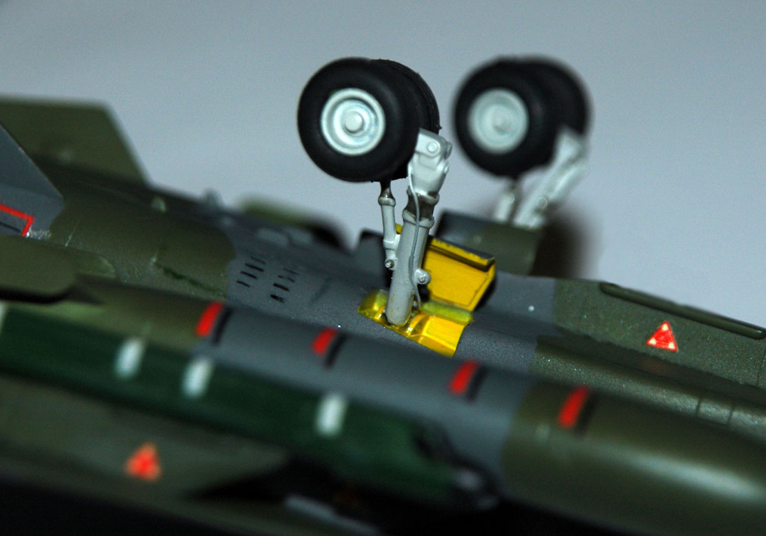 Данный агрегат собирался практически из коробки. Как обычно слегка оживил кокпит, поставил НеОмеговские кресла, Экипажевские колеса, поправил переднюю стойку шасси и добавил гидравлику. Подвеску РЭБ пришлось изготовить самостоятельно. Под центральный пилон планировалась GBU-123, но как то с ней не задалось, вот и оставил пока, как есть.