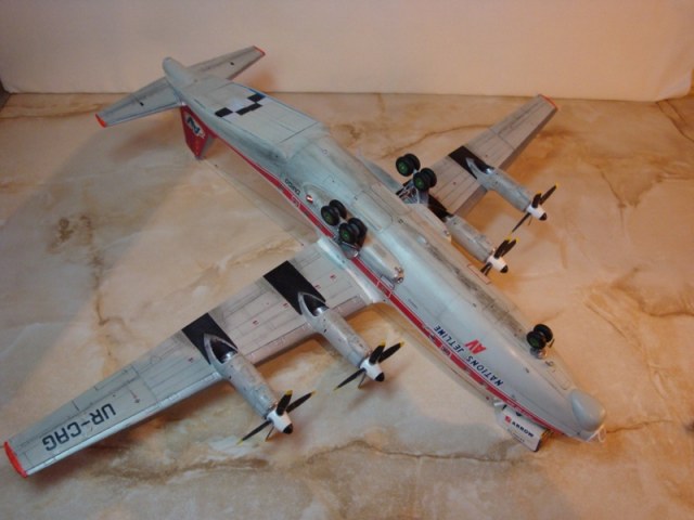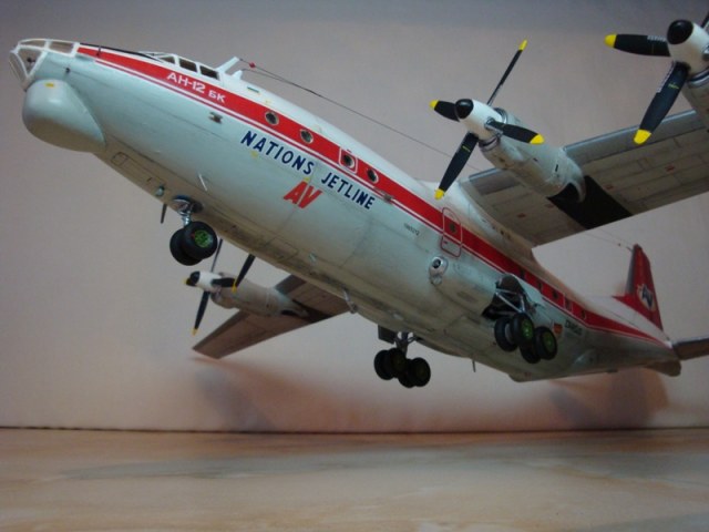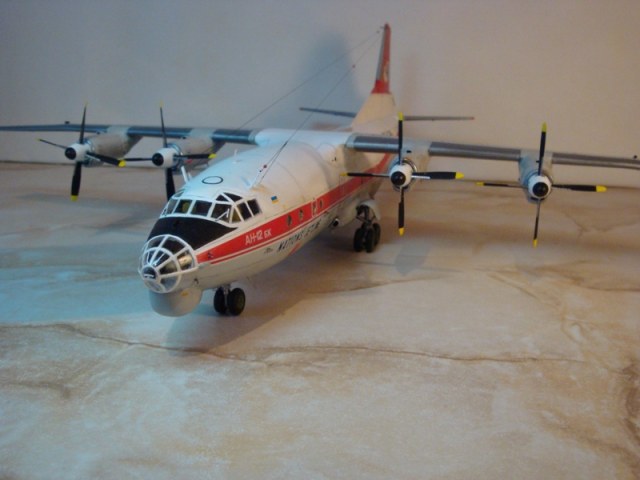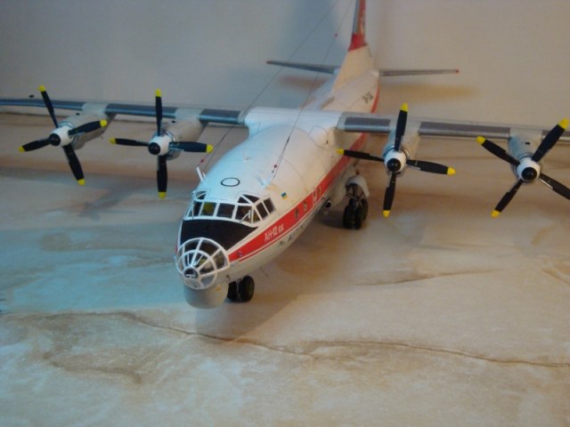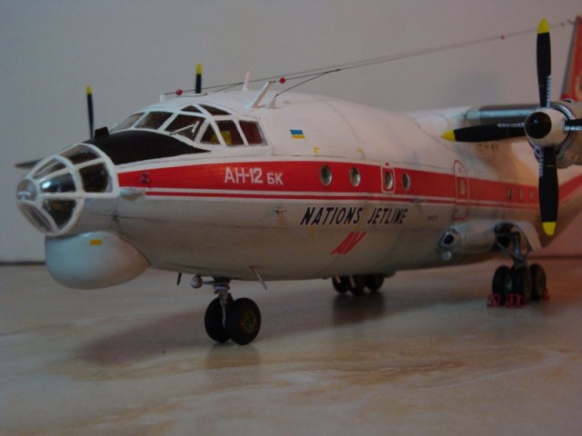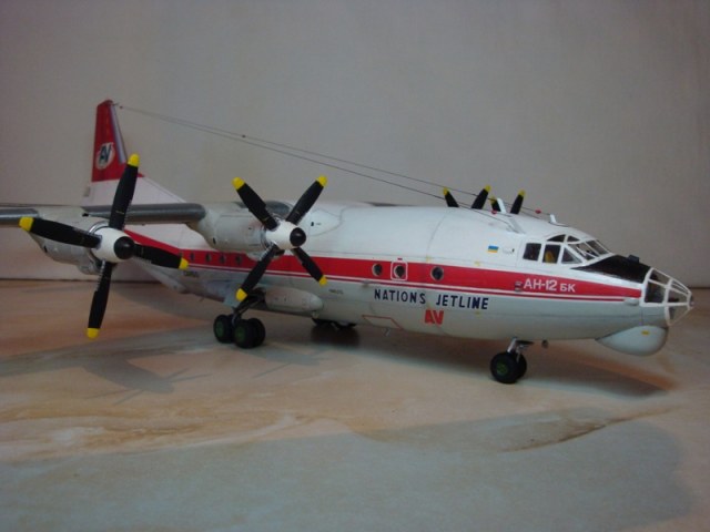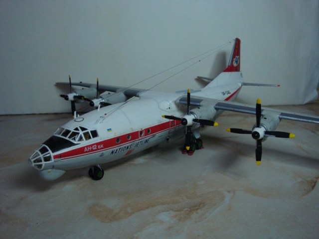 Добрый вечер. Ан-12БК который хочу Вам предложить был собран в 2008 году. Модель в начале была собрана в варианте "AERO VIS", но гдето через год возникла проблема. Все белые части которые красились якобы Японской краской (фирму не помню флакон не сохранился ) стали жолтыми. Я так думаю, не обошлось без Великого Китайского Народа...... Пришлось распрощаться с "AERO VIS". Модель я перекрасил, но вот с деки осталась только красная полоса. Купить запасную деку у нас практически не возможно, а если и есть то стоит она пол стоимости модели ( легче купить новую модель ) одним словом представляю то, что получилось с разных остатков. Новый Ан-12 я только начал собирать. К февралю сделаю себе подарок на День Рождения .