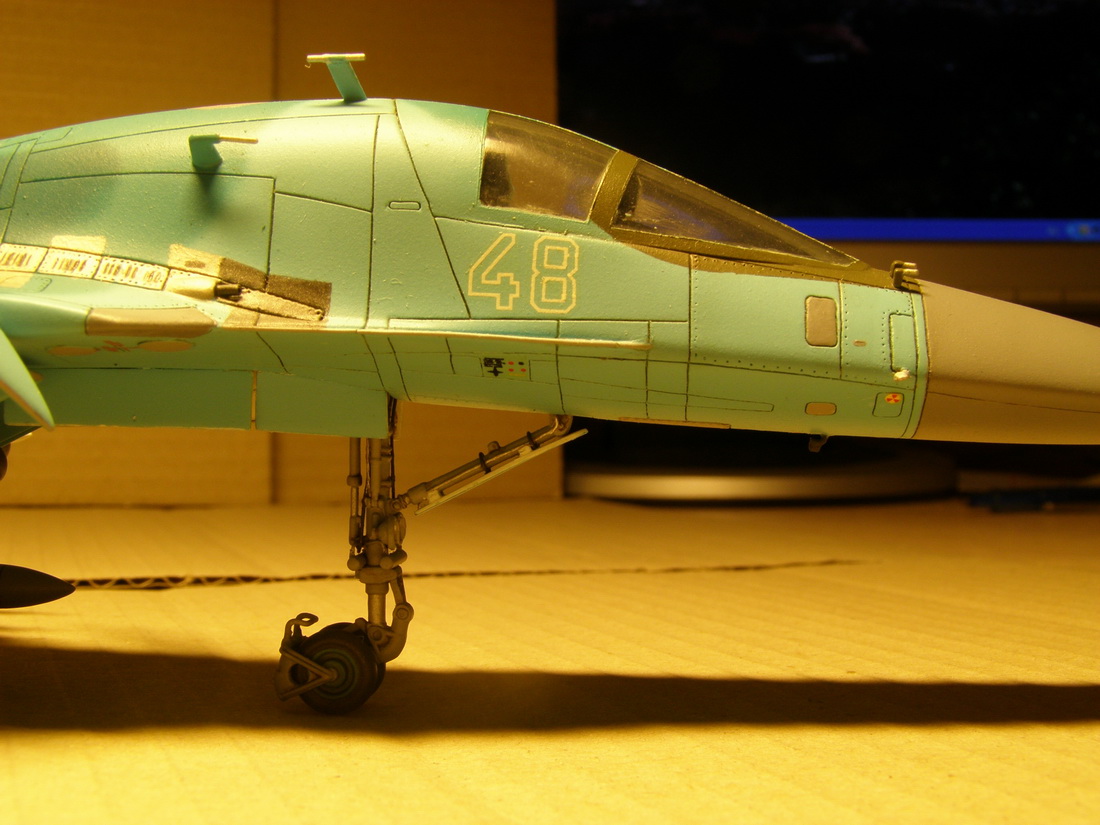 Доброго времени суток. Представляю Вам Уважаемые коллеги модель СУ-34 с бортовым номером 48. Модель собиралась, практически из коробки, использовал в работе фото, ну и советы «каропчан». Произвел следующие доработки: