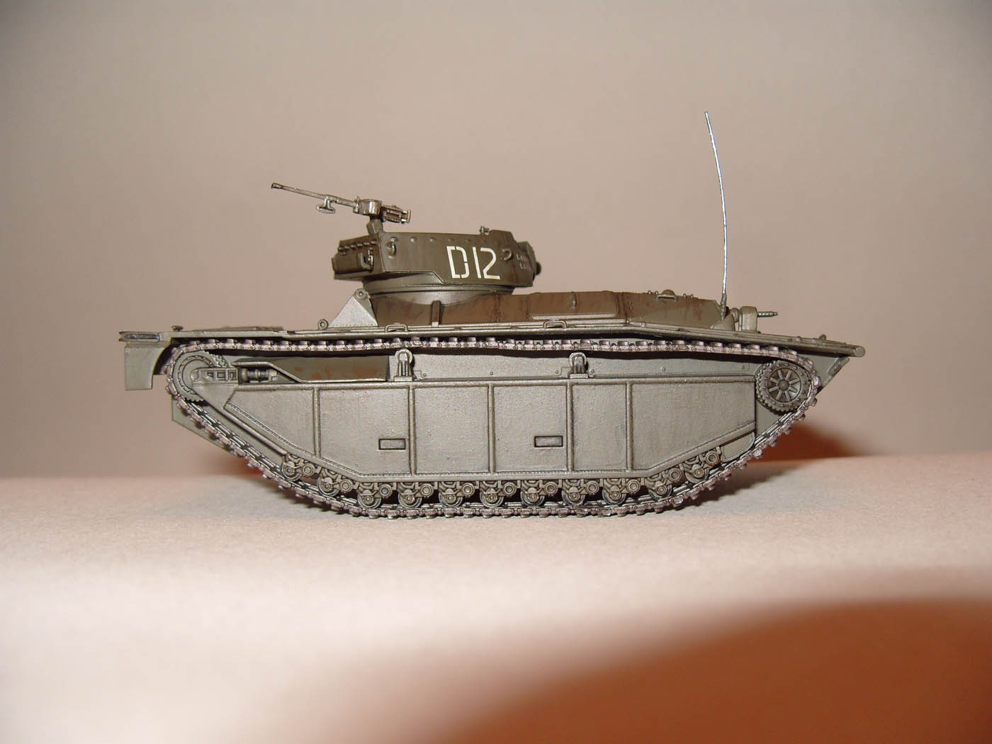 Американский плавающий танк LVT(A)4 был построен на базе плавающего транспортера LVT(4). В открытой башне этого танка, позаимствованной у самоходной установки М8, устанавливалась короткоствольная 75-мм гаубица с начальной скоростью снаряда 381 м/сек и дальностью стрельбы 8680 м.