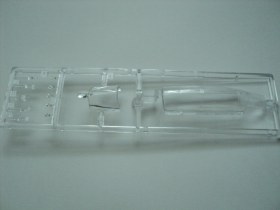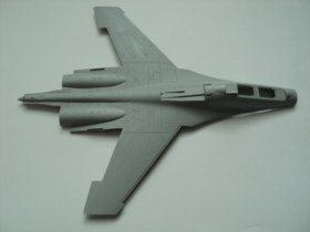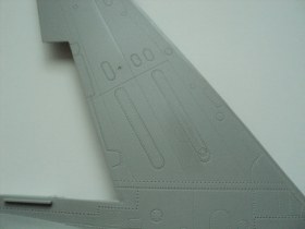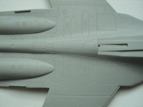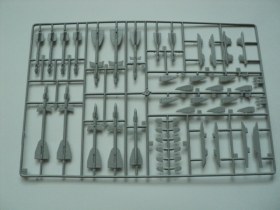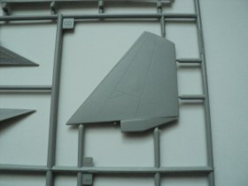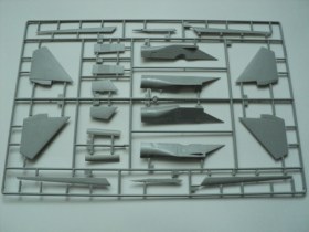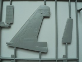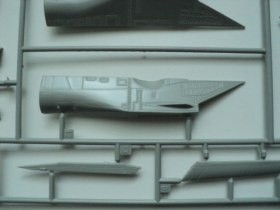 Модель состоит из четырёх литников серого цвета, двух половин фюзеляжа и одного литника с фонарём кабины. Каждый литник упакован в полиэтиленовый пакет. Хорошее качество литья, но присутствие облоя в некоторых местах и особенно расшивка (очень глубокая и неровная) портит всю картину . Имитация заклепок – также глубокая и неровная, а в некоторых местах, сделана практически насквозь .Бросается в глаза неправильная геометрия обтекателя.