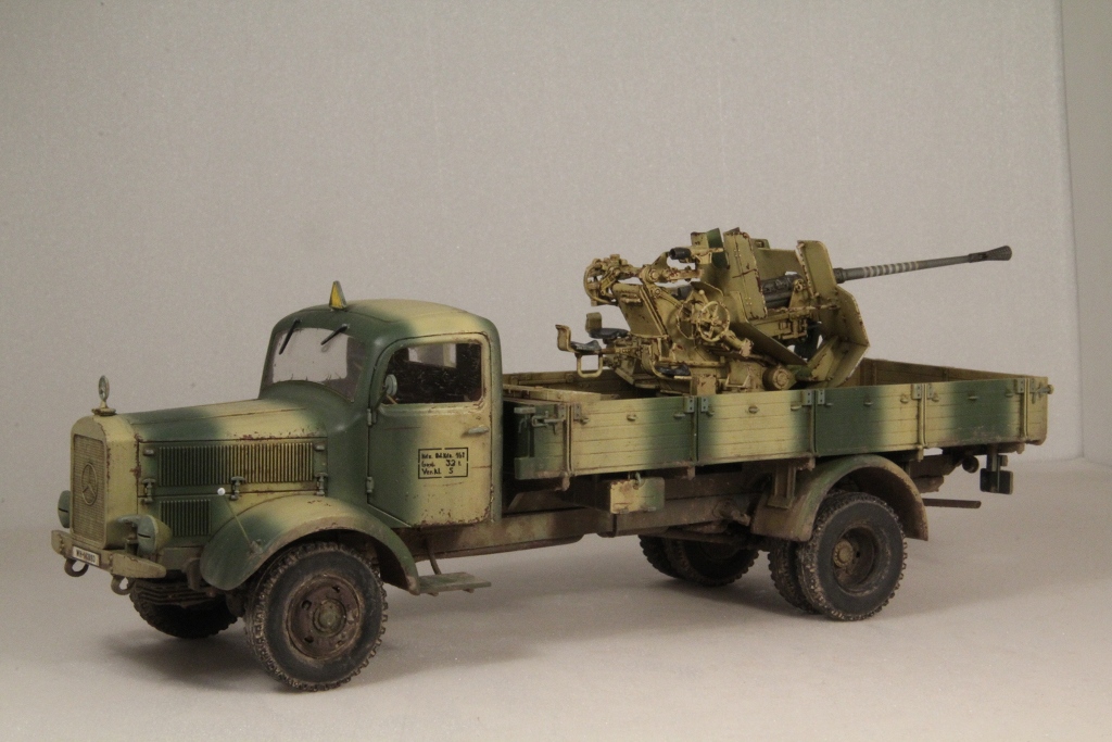 В реальности,пол кузова из металла,борта сетчатые как на sd kfz 7 зенитном варианте,и кабина от тогоже sd kfz 7 позднего выпуска, рама под кузов усиленна,и есть дополнительные опоры,а да пушка 4-х ствольная флак-38
