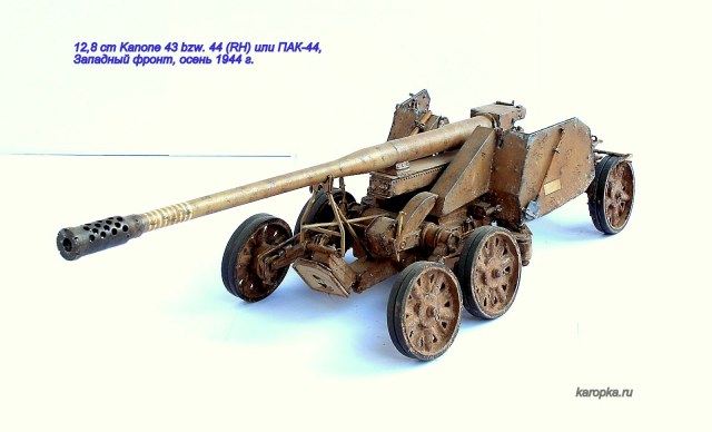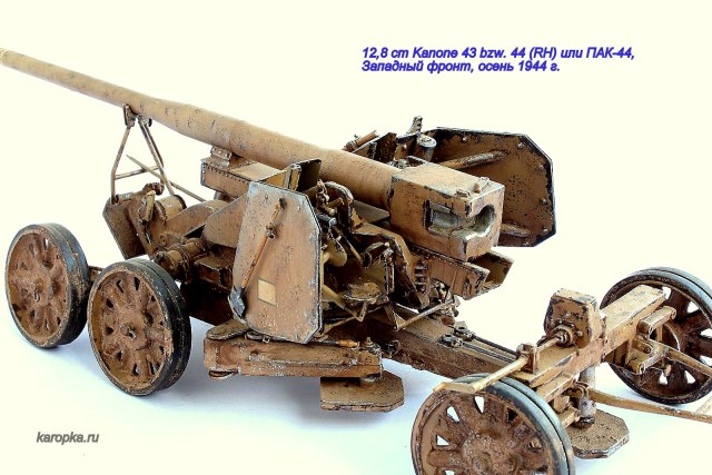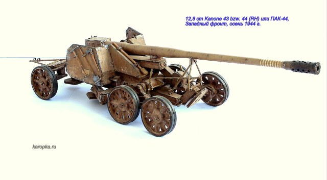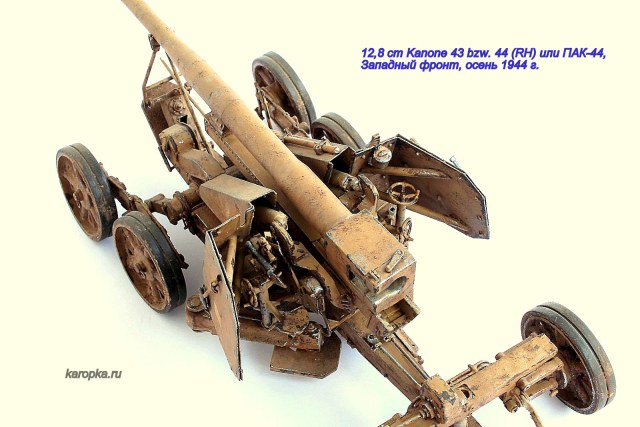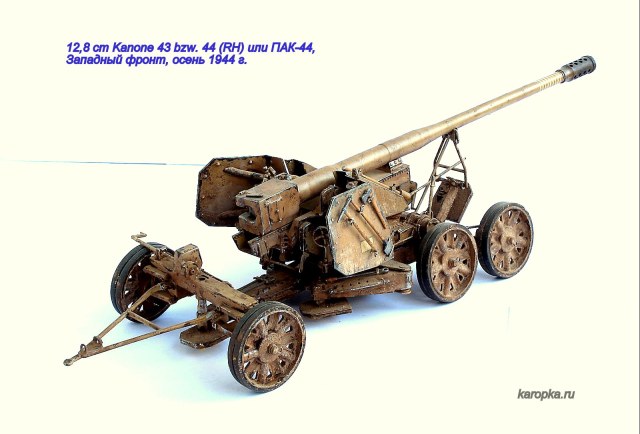 Приветствую собратьев-моделистов! Перевыкладываю свою модель мощнейшего противотанкового орудия 2 МВ - 128 мм. орудия ПАК-44 (не прошло в галерею из-за фото, дождался хоть какого-нибудь солнца и перефотографировал).