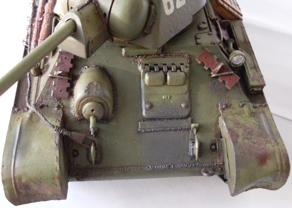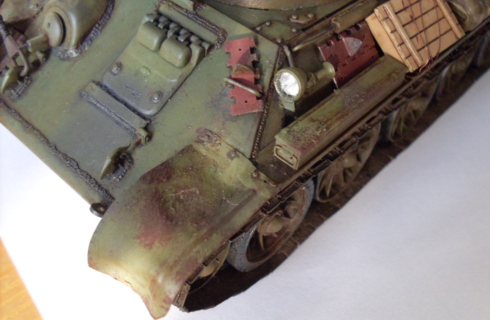 Хорошая тридцатьчетвёрка вышла,живо выглядит.Только на мой взгляд,бронеполоска возле люка мехвода в ширину больше оригинала,про ремни сказали с ящиком,а в остальном здорово.