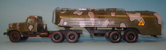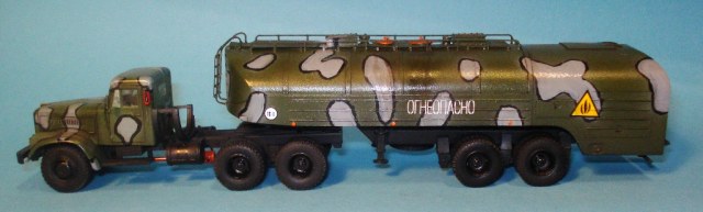 Краз выполнялся почти из коробки, добавил фары Ельф и дворники. За дворники пардон, только когда доделал увидел что на Кразе крепятся сверху кабины. Отрывать нет смысла, так-как только испорчу всё. Прицеп так же делался из коробки без дополнений. Красил красками мр.хобби. Использовал смывки Миг. Грязнить не стал.