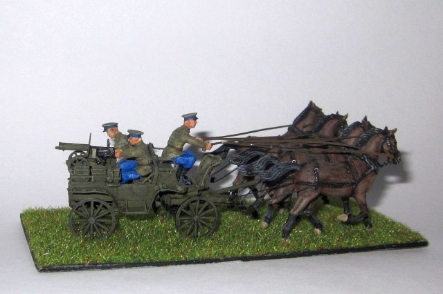Лошадей взял из набора Италери (какая то конная артиллерия). Срезал ненужную упряжь, добавил нужную.
