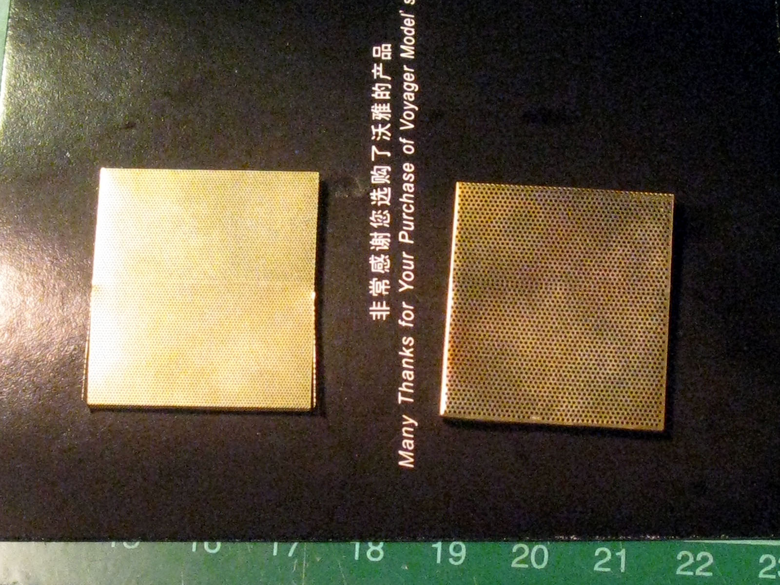 Сразу скажу что травло выполнено из тонкого металла (?медь?), в отличие от травления из набора Трумпа. Разница в толщине примерно в 2 раза, и взглянув на данное травло, сразу понял что трумп засунул своё травло, только лиш для того, чтобы поднять цену (копийности оно не сильно добавит)