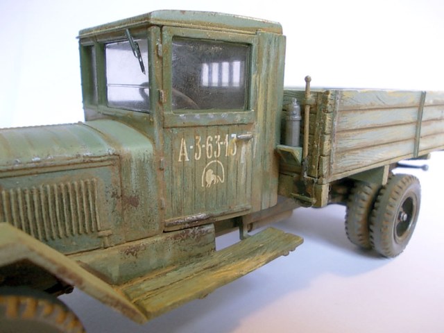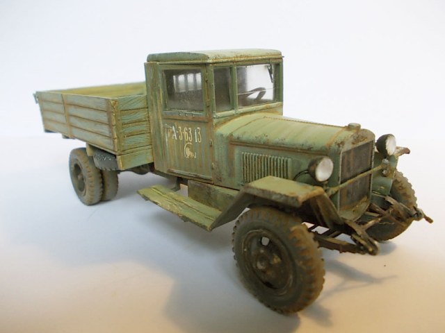 Действительно повидавший виды грузовик:-) Тонировка, сколы понравились, правда уж насколько мне нравится поюзанная техника, здесь мне кажется немножко перебор получился. По матчасти говорить не буду, модель видимо задумывалась "из коробки", но вот проводка к фарам ну оочень толстая -)))