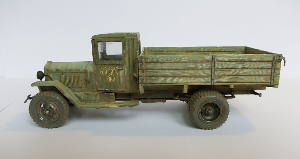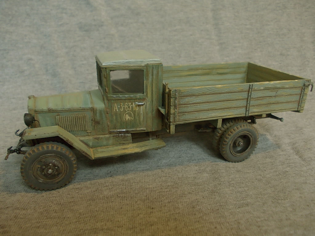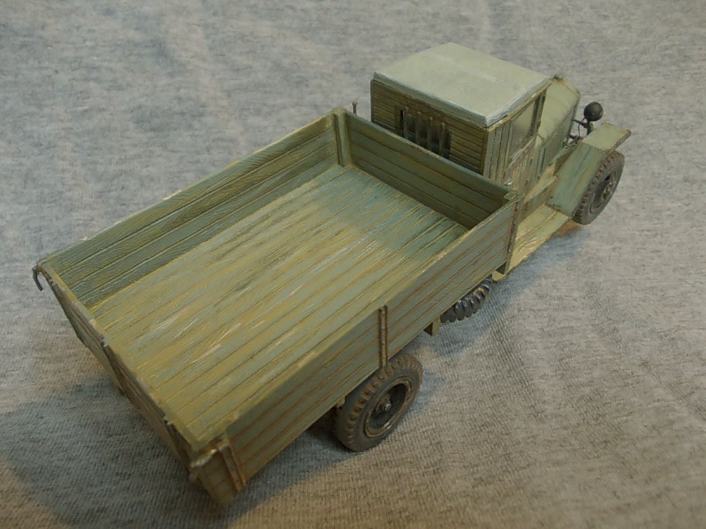 Знаю эти дрова не по наслышке. у вас оч зрелищный грузовик получился!!!Только из придирок - кабина как будто металлическая со ржавчиной и подтеками....но это как вы сами сказали идет по инерции от БТ.Кузов, колеса, капот - Супер!
