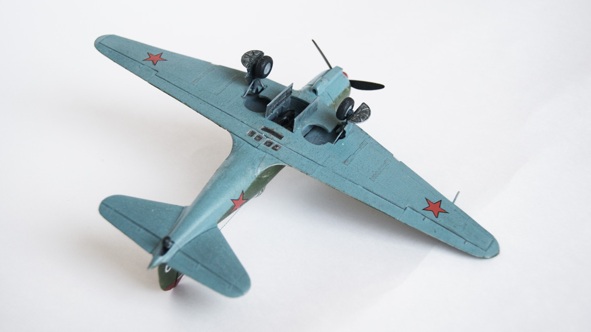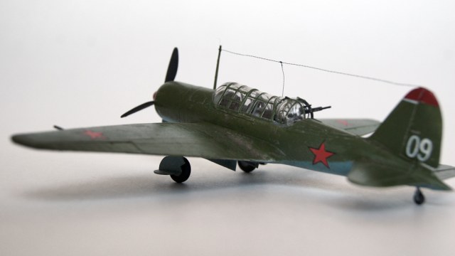 Собиралась без проблем , порадовала тонкая аккуратная расшивка (красил зубографом вроде сохранил её). Собирал как говорится из коробки доработок нет . Краски Звезда , Тамия . Бортовой номер на левом борту пришлось рисовать от руки (девятка осталась на скотче).