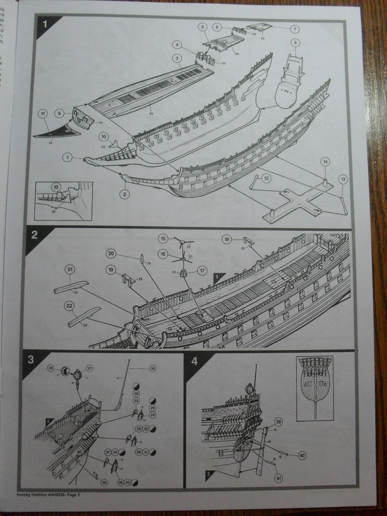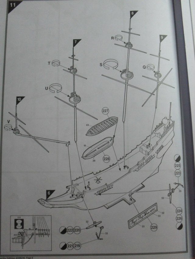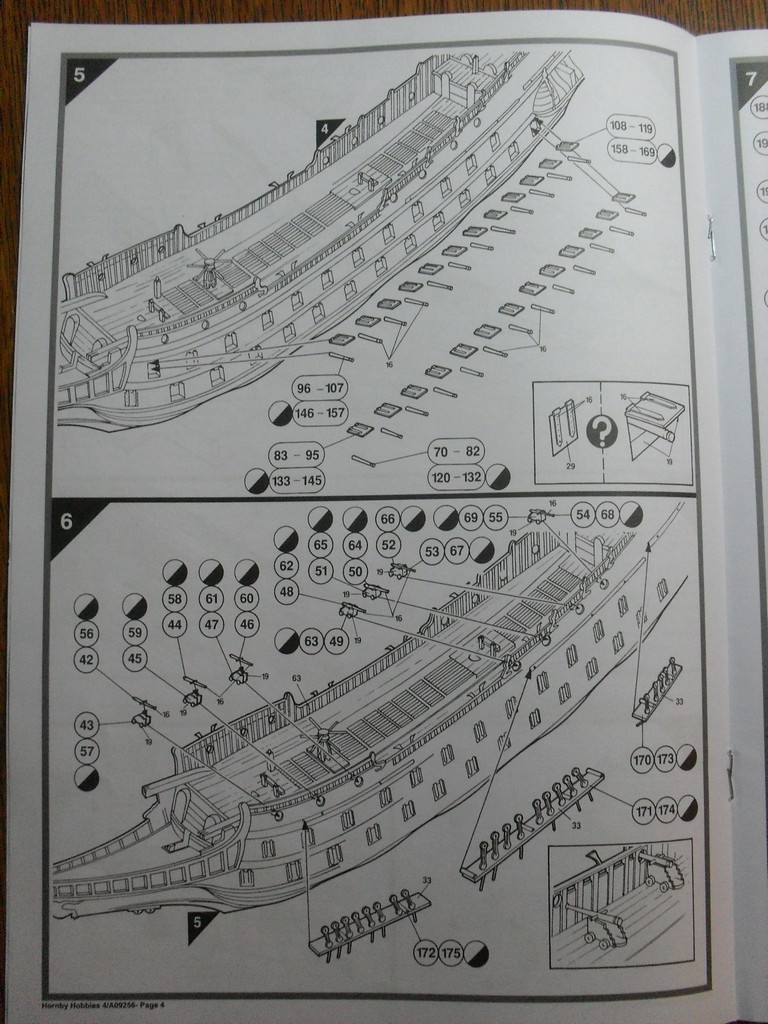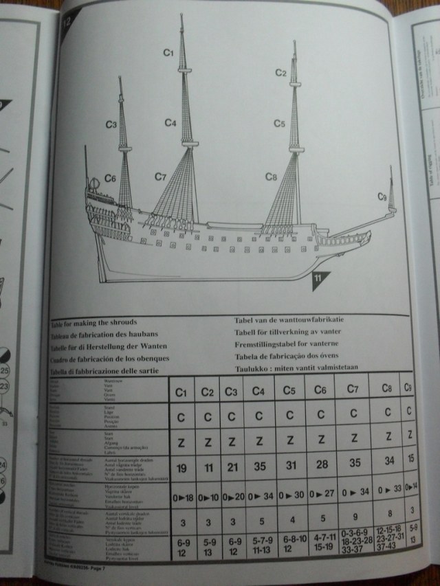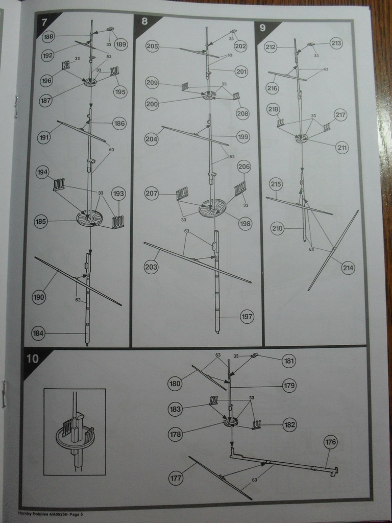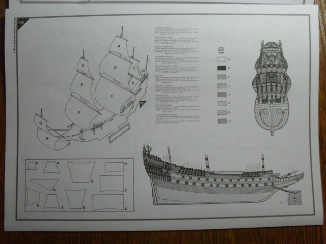 Инструкция дана в виде книжки формата А4. Вроде как все понятно. Схема проводки такелажа очень приблизительная. На последнем листе черно-белая схема окраски с приложением номеров красок от Хамброла.