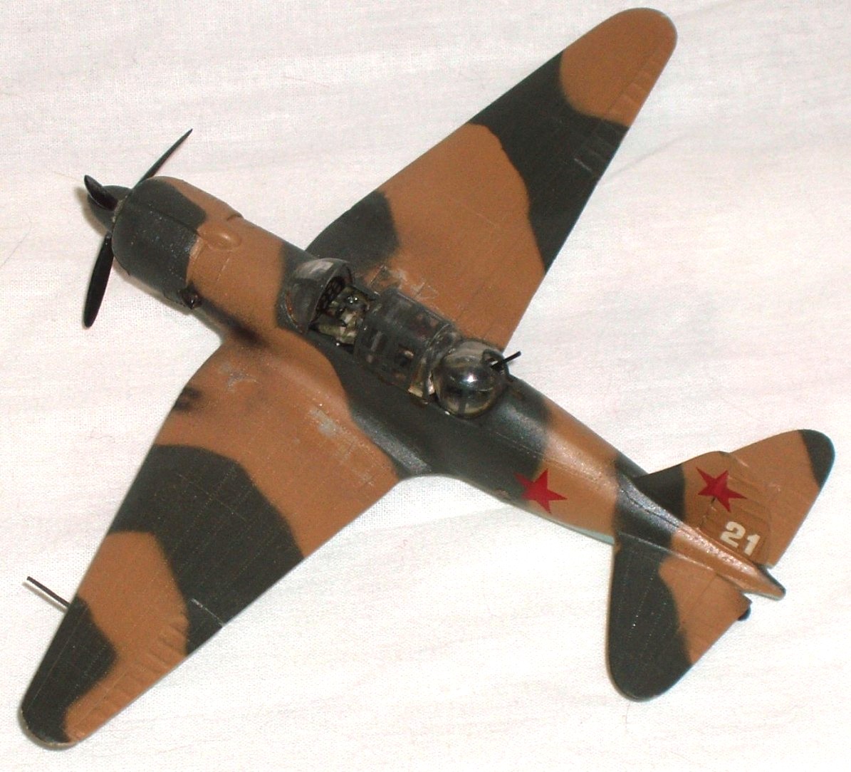 Это было литьё ЛНД, вероятно что и преподнесло «сюрприз»: после окраски нитрокраской пластик начал слоится. По возможности я попытался скрыть это следами эксплуатации. Нанёс на крылья клёпку. Краска-нитра. Декаль- сборка.