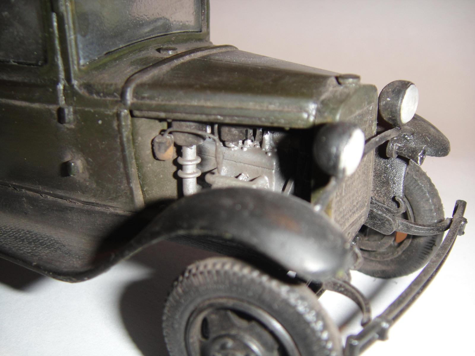 Модель данного производителя требует серьезной доводки сама по себе. Я скажу с чего начал сам - доштуковл боковины капота, плюс надо нарастить еще морду. Поперечину, на которой фары крепятся, я делал из тонкой проволки.Фары ставлю - Эльф,но это на любителя, при желании можно и изкоробочные довести,(я не критикую ваши).Еще я буду делать проводку к фарам.Бампер так же буду делать сам из пивной жести, на мой взгляд - изкоробочный не то.Дверные ручки чуток сточить. чтоб были потоньше.Что-то еще по выштамповке крыльев, но тут знатоки посоветуют лучше, я пока сам этот вопрос изучаю, в процессе сборки своей.Колеса я ставлю от ICM, качеством доволен, но это опять же, на любителя.Просто я пришел к мнению, что не стоит клепать модель за моделью, а лучше потратиться на смолу или аналог колес и фары Эльфы для одной,чем собрать две - три "изкоробки" с низким качеством.А процесс сборки мне ваш понравился, видно что старались.Удачи вам!!!