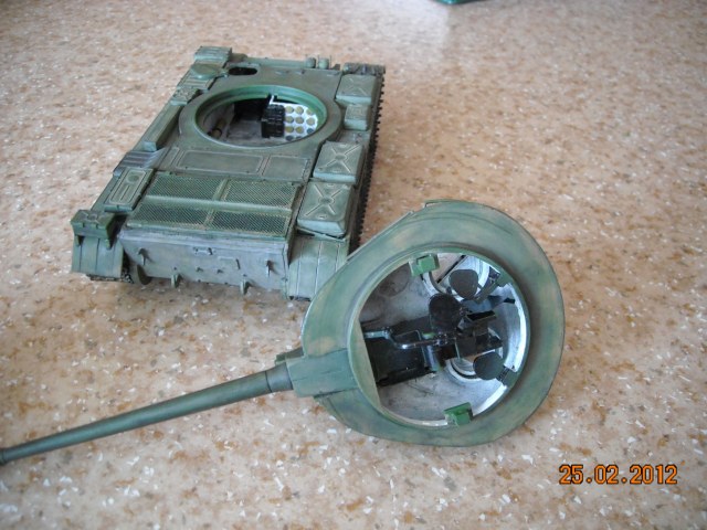 ВСе супер, но если посмотрите на реальные фото, то слева от пушки прожектор "Луна", он соединяется со стволом двумя рычагами и поднимается(опускается) вместе с ним....я это делаю в 72 масштабе а уж в 35 сделать легче. Кстати такое крепление прожектора на всех советских танках с Т-55 до Т-80....