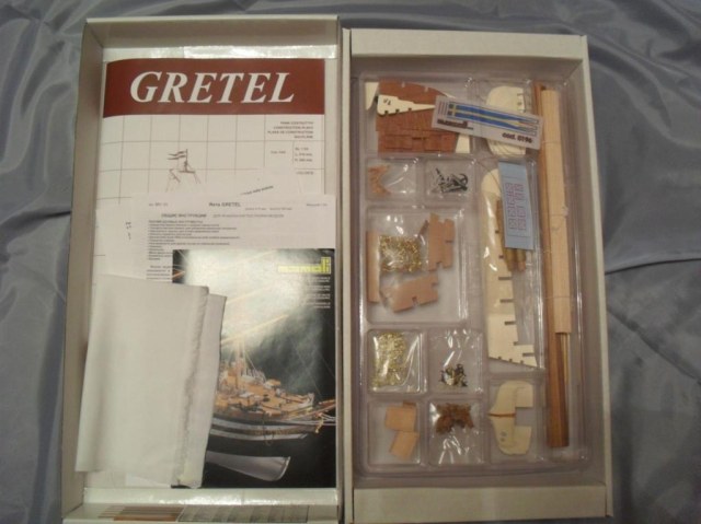 У нас традиция, каждый год 31 декабря мы с друзьями ходим в баню. Точнее мы там Новый год и встречам. И вот как обычно помывшись, всласть натрепавшись и встретивтаки этот самый Новый Год, мы с семьей под утро вернулся домой и по ещё одной традиции забролись под ёлку разбирать подарки. Мне как главе семьи досталась самая большая упаковка, в которой оказалась коробка с моделью прогулочной яхты "Гретель", построенной в середине XVIII в. по чертежам Ф. Чапмена.