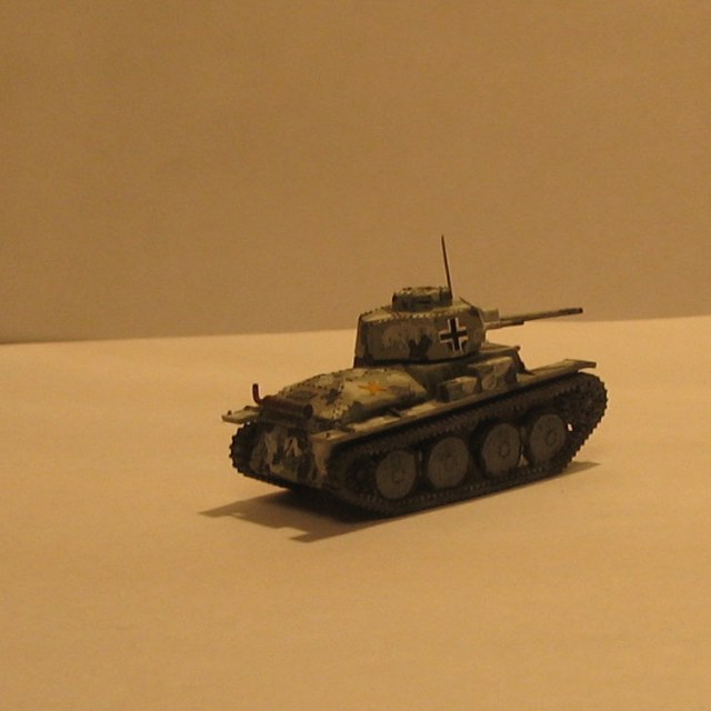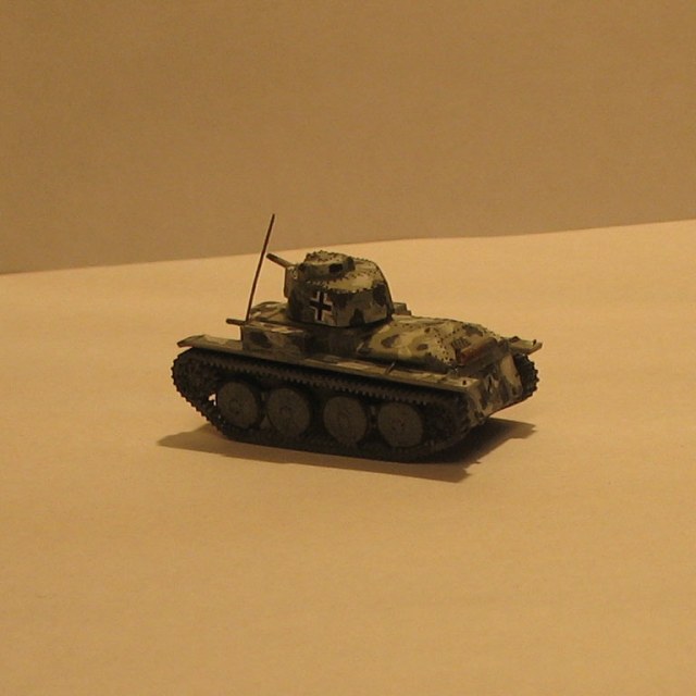 Модель танка Pz-38 (t) от Звезды в масштабе 1:100. Одна из первых моделей в сознательном возрасте. Первый опыт покраски собираемых моделей.