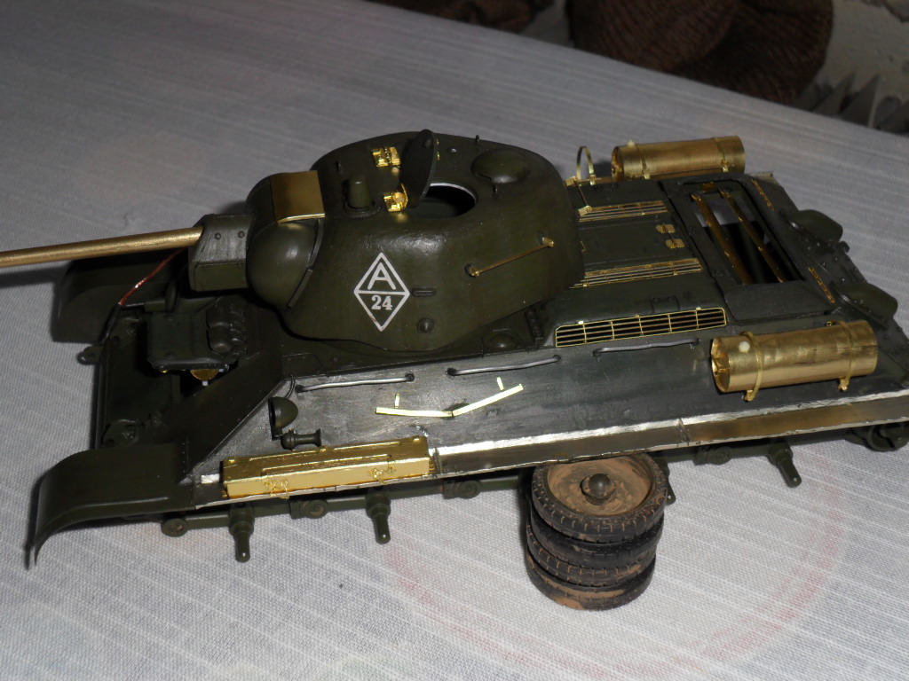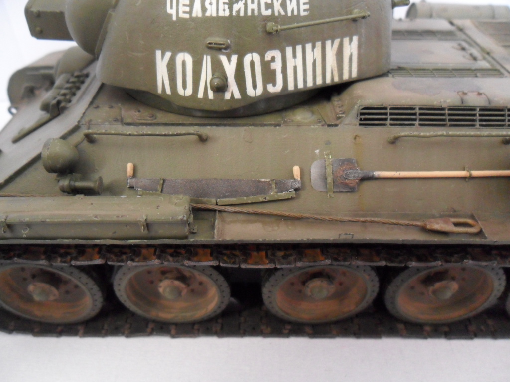 А по делу - ясное дело, что тамиевская т34 (ЧТЗ) по матчасти далека от оригинала, и поэтому её надо воспринимать как некий собирательный образ и судить работу соответственно. Глядя в таком свете могу сказать, что с художественной точки зрения выглядит работа вполне достойно и усилия были потрачены не зря. Всё остальное придёт со временем, и копание в матчасти, и третее-пятое-десятое. Начинающему моделисту удачи)