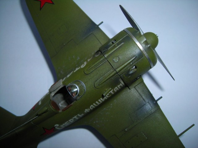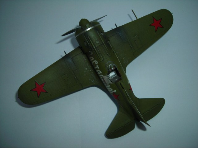 Доброго времени суток, уважаемые каропчане. После долгого размышления решил выставить, на всеобщее обозрение, свою крайнюю модель –истребитель и-16 тип 24 на котором летом-осенью 1941г. вполне мог летать ас-североморец, летчик 72 САП Борис Сафонов. Модель собиралась неплохо за исключением двигателя, который никак не хотел «вставать» на свое место. Захотелось исполнить данный аэроплан с открытым капотом, что представлено на фото. НУРСы от ЛаГГ-3 фирмы Роден. Выхлопные патрубки двигателя рассверлил, натянул антенну из лески 0,15 мм. Пулемет-иглы от шприца 5 мл. Окрашивал нитрой. Мешал краски: humbrol, revell, modelmaster. Окрашивал модель при помощи компрессора JAS 1203, белорусского аэрографа завода Этон 1998 г.в., аэрографа JAS 1117. После окраски и нанесения декалей модель покрыл глянцевым лаком humbrol. Тонировал акварелью. Нагар-темно-серая краска непонятного производителя задутая через JAS 1117. Фото произведено зеркальной фотокамерой NikonD 5100 и мыльницей NikonCoolpixL3.