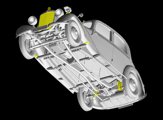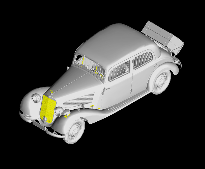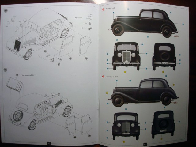 модель очень хорошая проработка мелких деталей шикарная ну на мой взгляд, двигатель с капотом сделаны просто отлично))у капота понравилось то что даже жабры сделаны с отверстием, и ещё понравились пружины я ещё такого не видел не в одном наборе, есть травлёнка стёкла и несколько вариантов декалей, так же в набор входит 5 фигурок: бабки, тётки, мужика в шляпе, паренёк гитлерюгенд и полецай