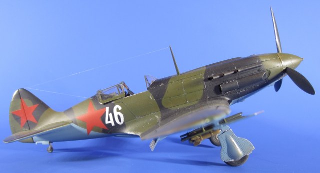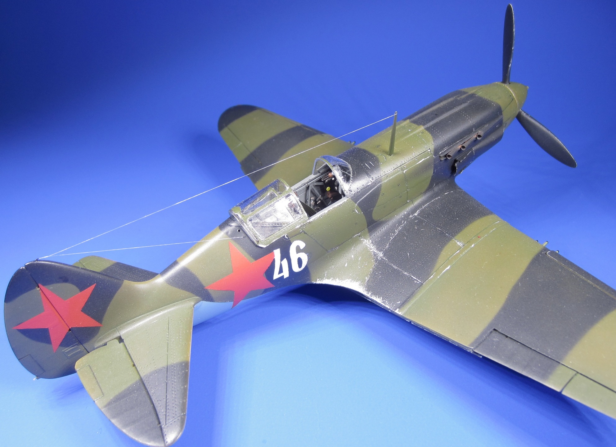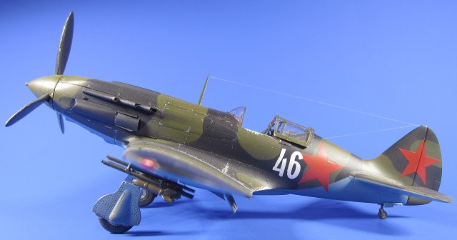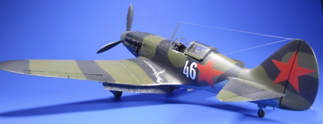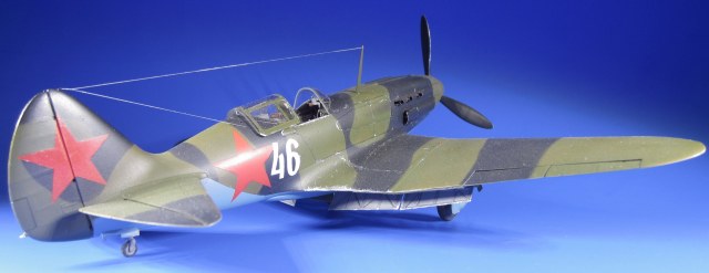 Грунтовка «ТАМИЯ». Окрашивал водорастворимым «АКАНом» (палитра «Авиация СССР 2-й мировой 1941-43г»). Звезды и бортовой номер окрашены через трафареты, вырезанные на плоттере.