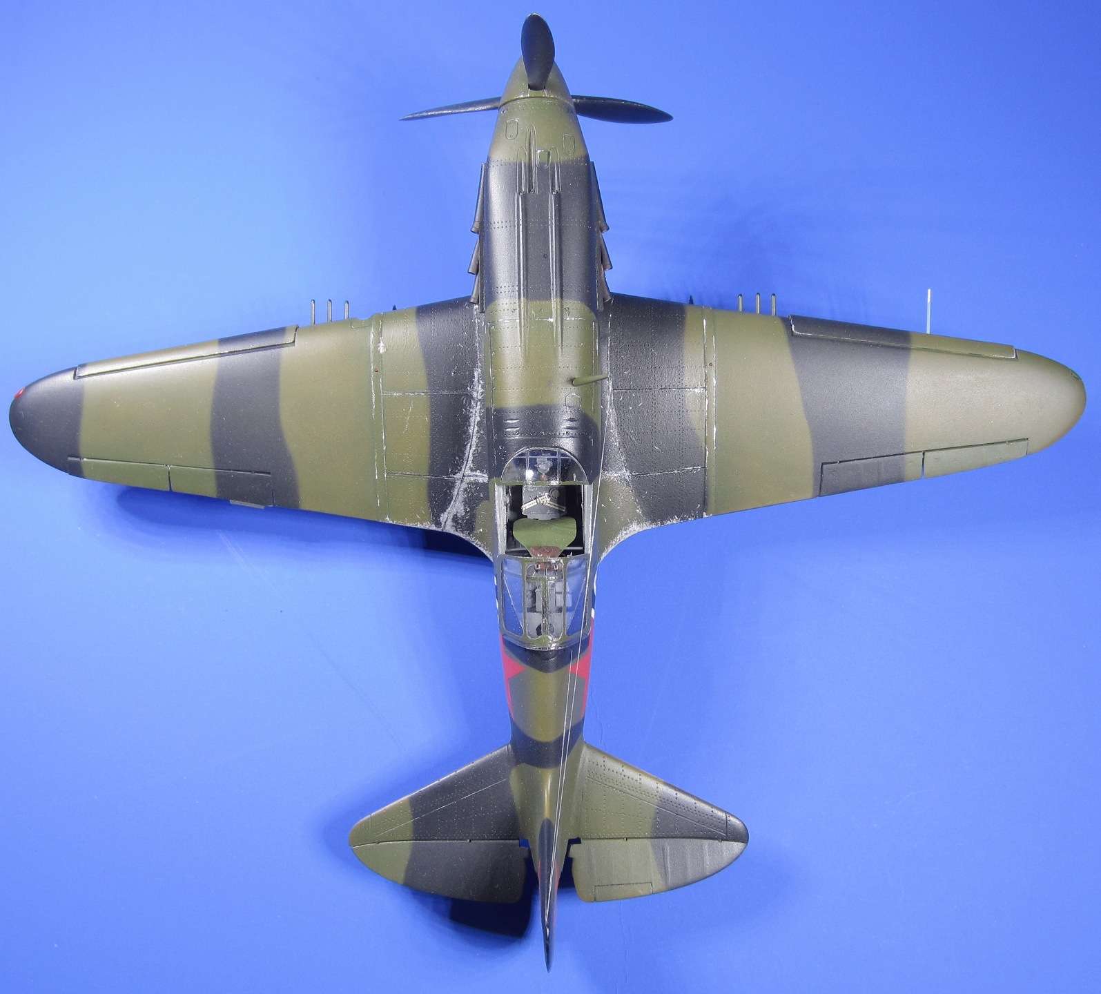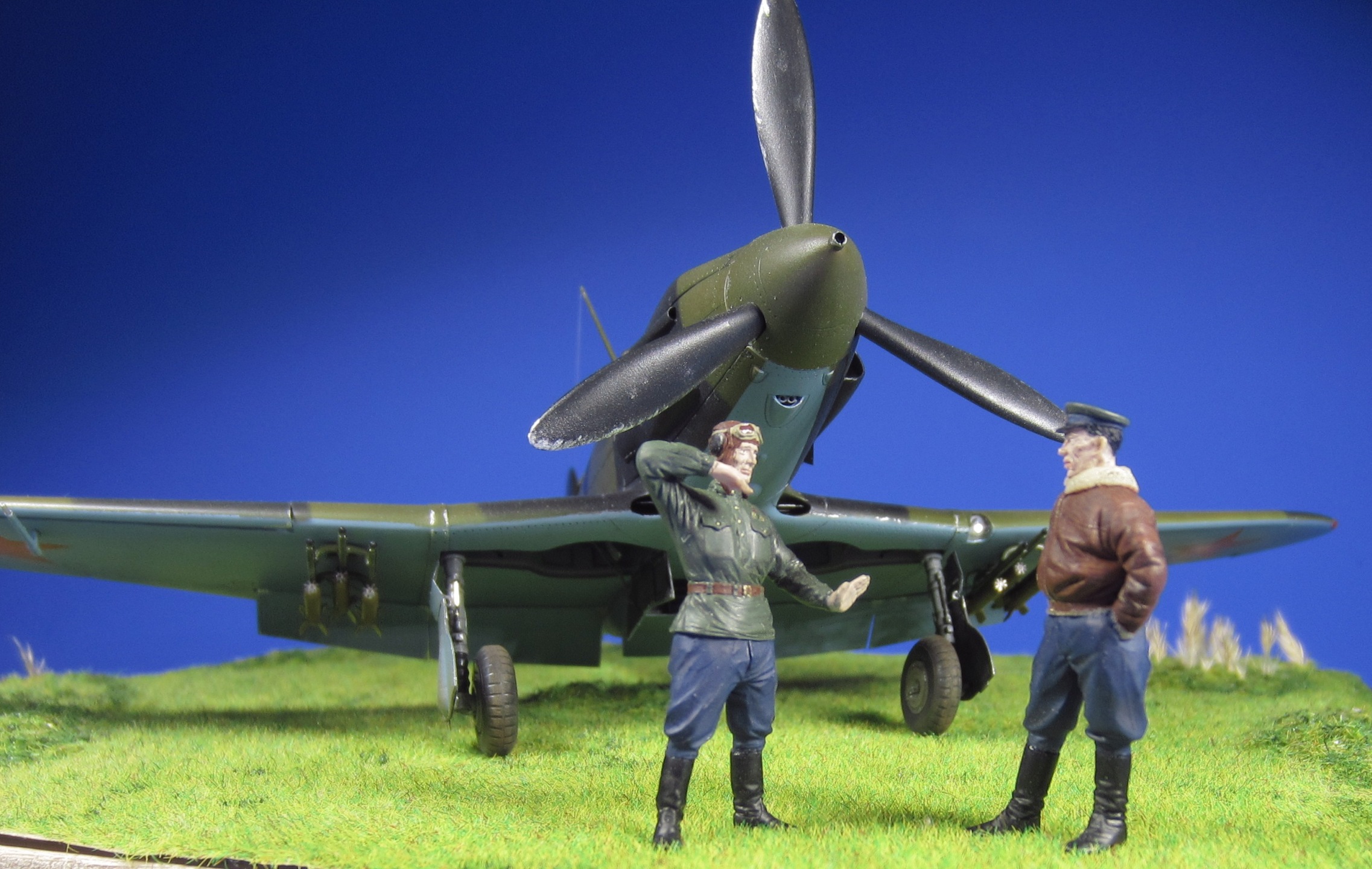 В исполнении Вашей модели понравилось абсолютно все: сама модель, доработки,покраска, сколы, фотографии, фигурки летчиков. Здорово!