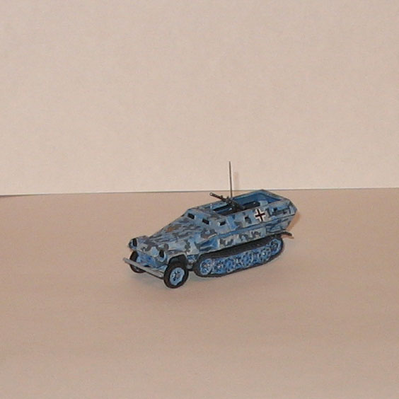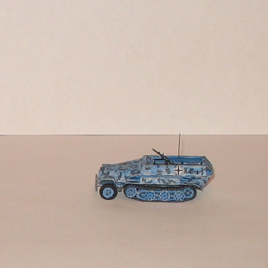Модель бронетранспортёра Sd.Kfz 251/1 Ausf.D от Звезды в масштабе 1:100. Одна из первых моделей в сознательном возрасте. Первый опыт покраски собираемых моделей.