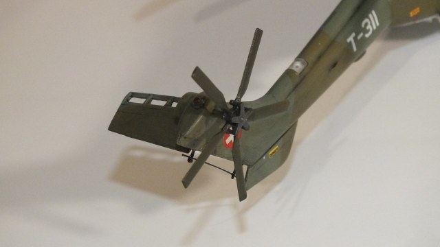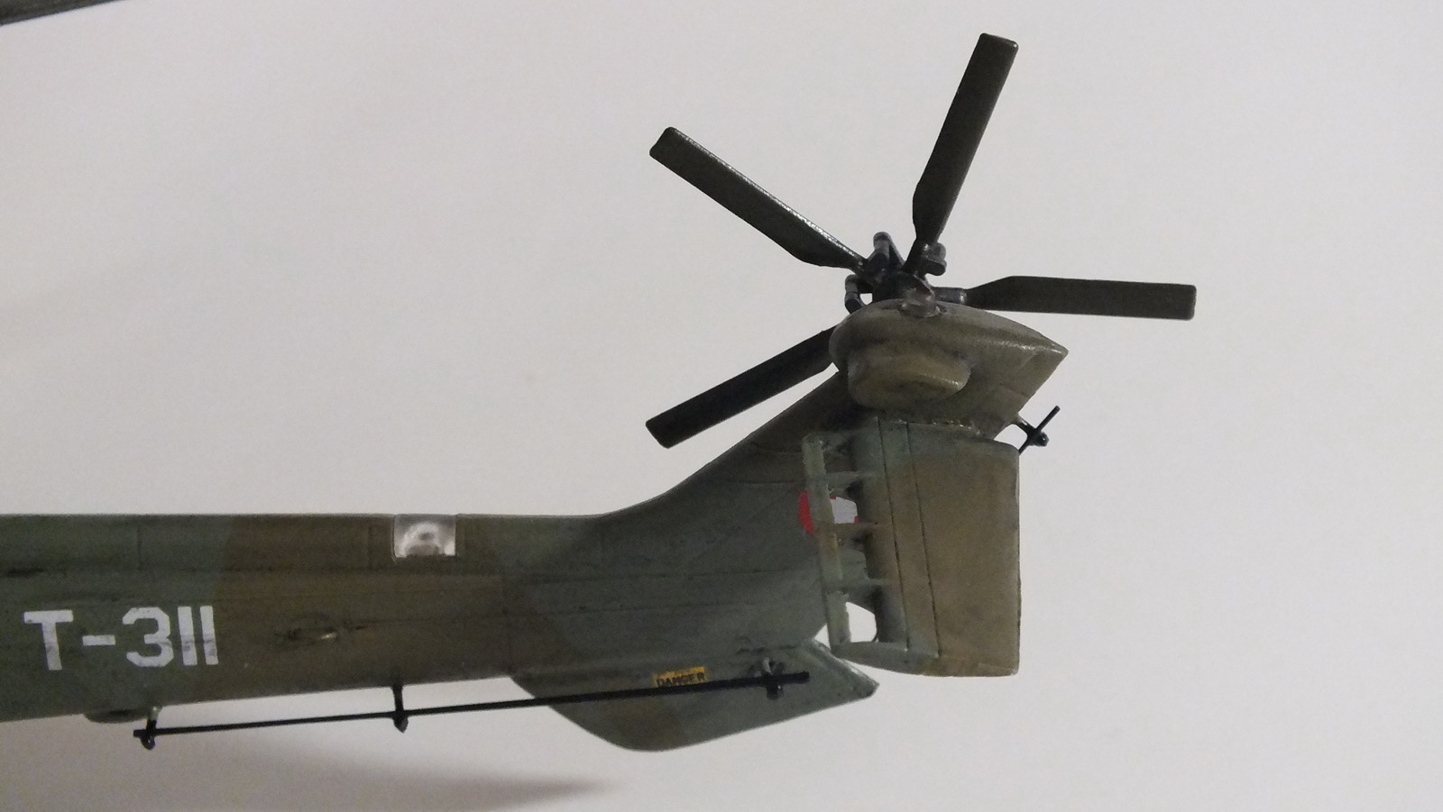 При сборке несколько раз «приятно» удивлялся: втулка НВ собирается и устанавливается сразу при склейке половинок фюзеляжа. Лопасти приклеиваются потом. Самое главное, что у лопастей крайне маленький участок для склейки, а потом еще это все пришлось делать навису. Переклеивал НВ раза три и все равно он кривой как не скажу что.Шпаклевалось все что можно и все что нельзя.